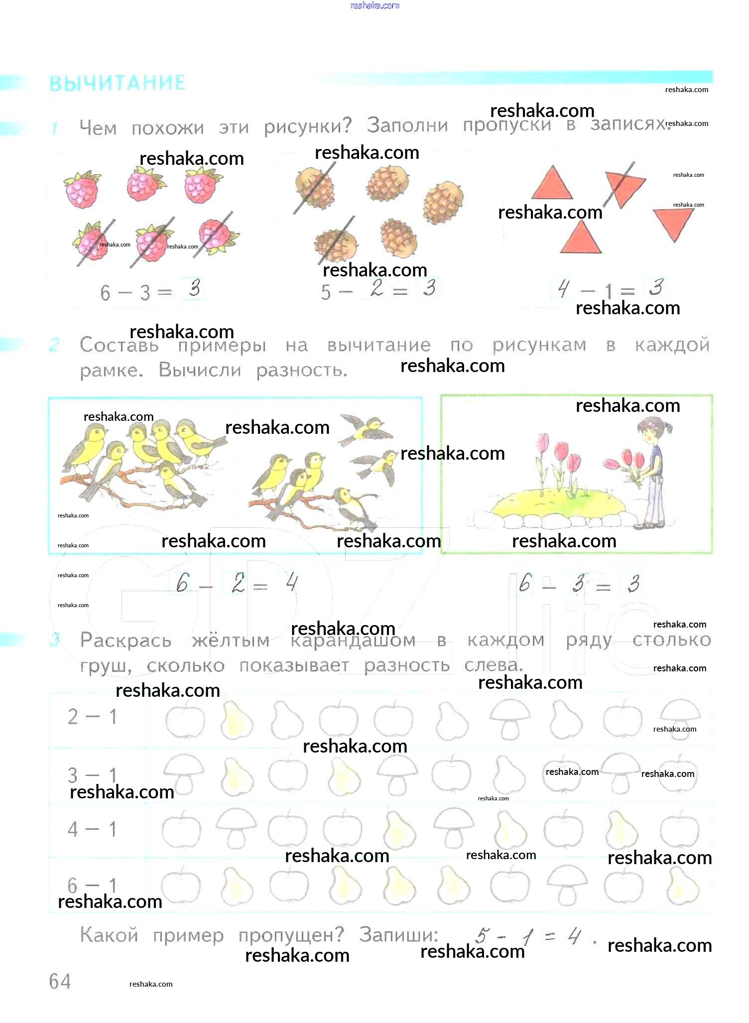 Решака - онлайн ответы Математика Дорофеев, Миракова за 1 класс Рабочая тетрадь ФГОС 2016 - 64