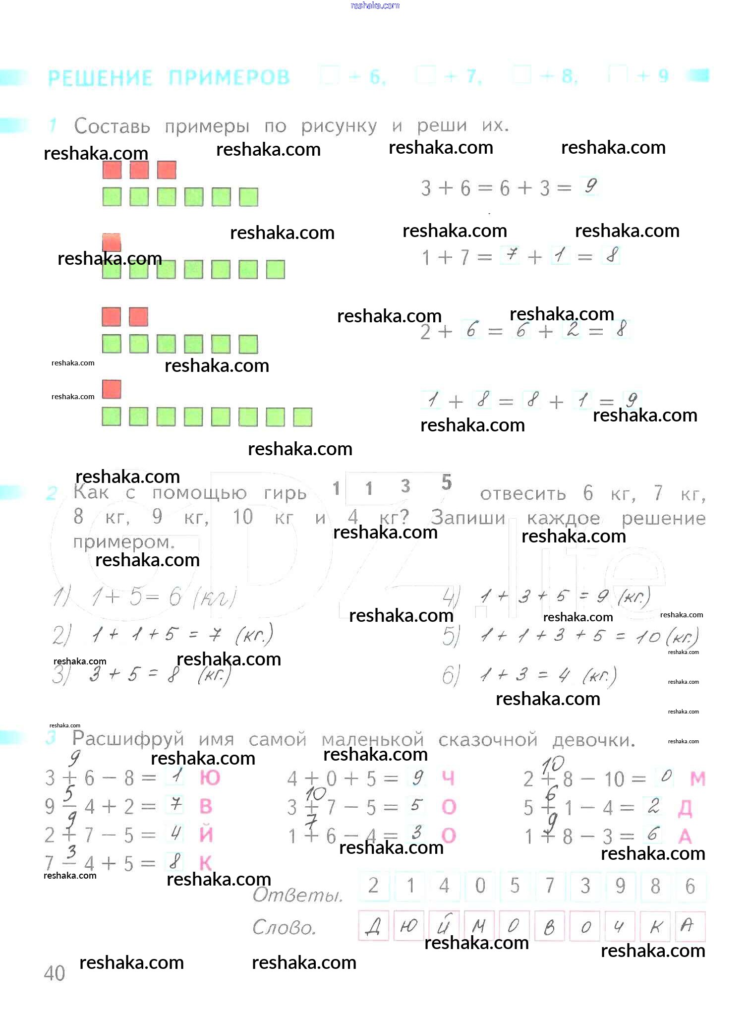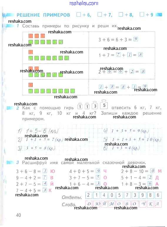 Решака - онлайн ответы Математика Дорофеев, Миракова за 1 класс Рабочая тетрадь ФГОС 2016 - 40