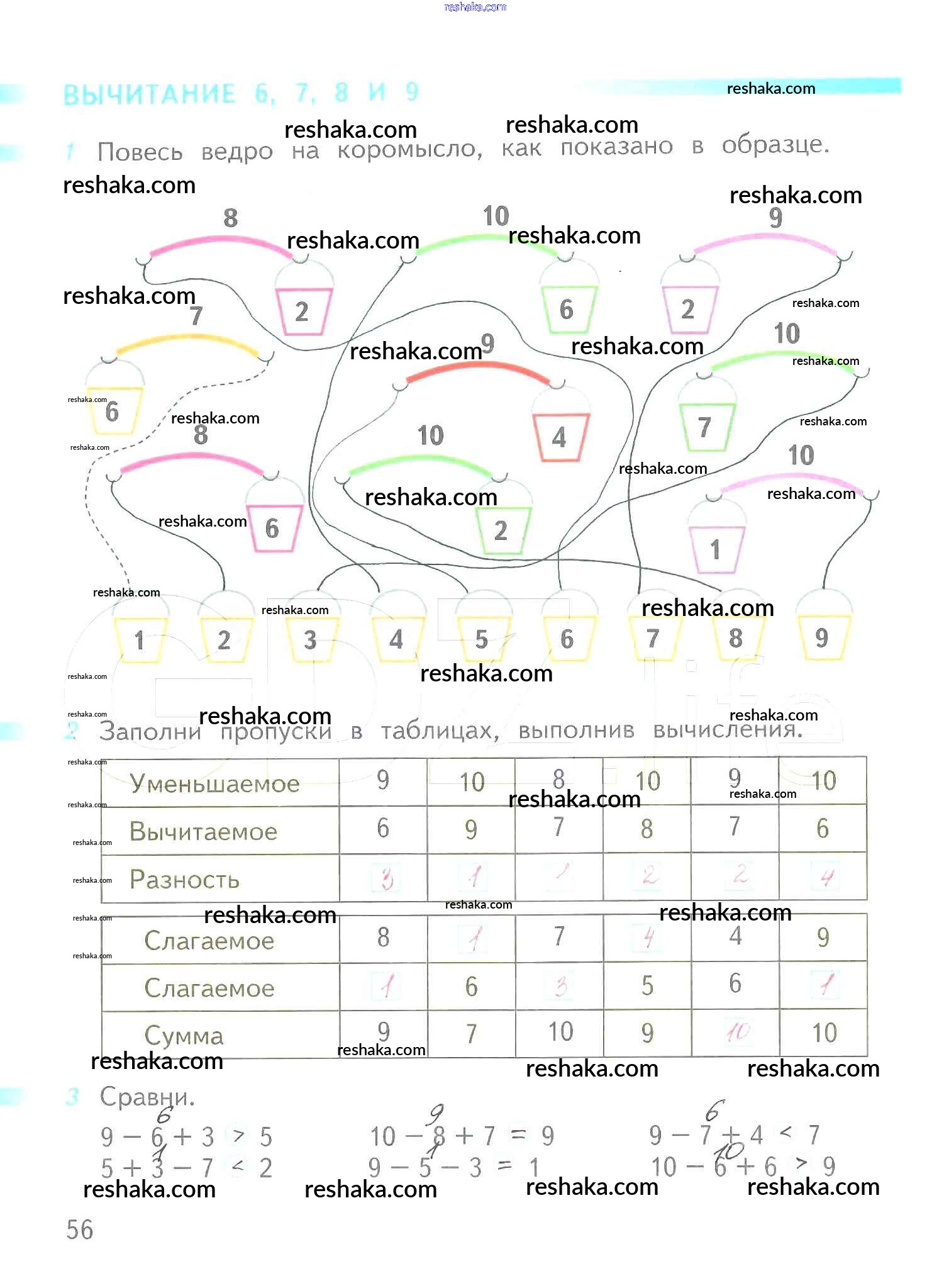 Решака - онлайн ответы Математика Дорофеев, Миракова за 1 класс Рабочая тетрадь ФГОС 2016 - 56