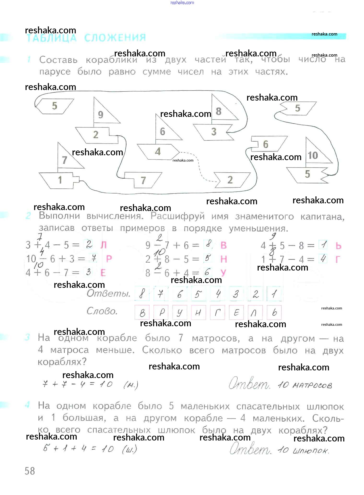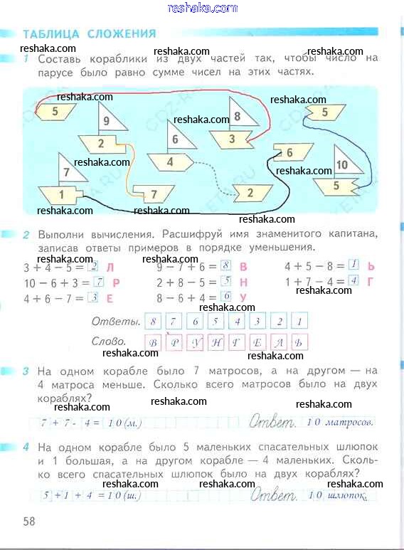 Решака - онлайн ответы Математика Дорофеев, Миракова за 1 класс Рабочая тетрадь ФГОС 2016 - 58