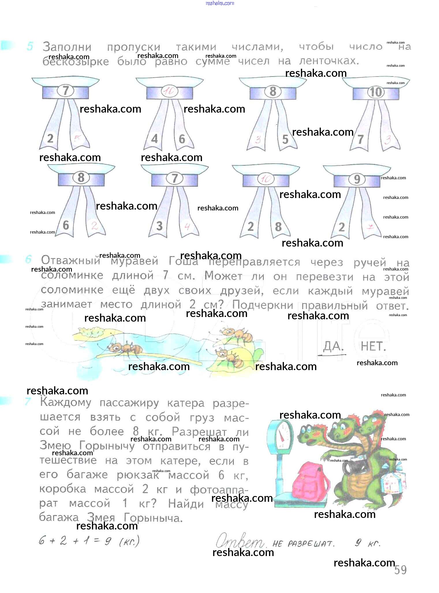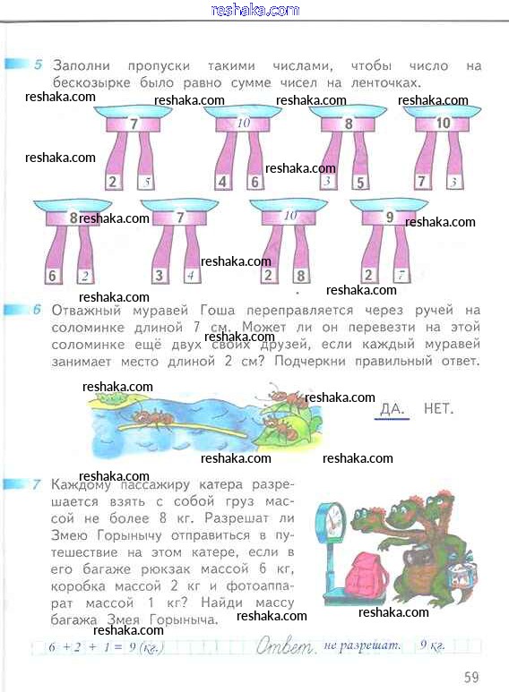 Решака - онлайн ответы Математика Дорофеев, Миракова за 1 класс Рабочая тетрадь ФГОС 2016 - 59