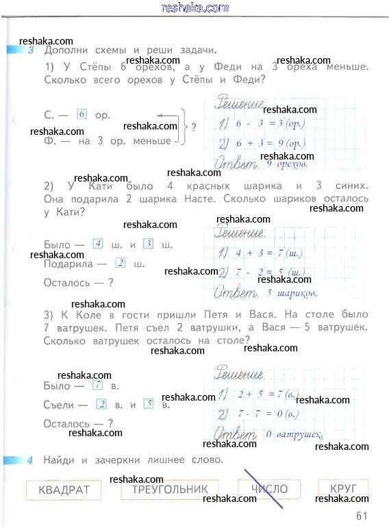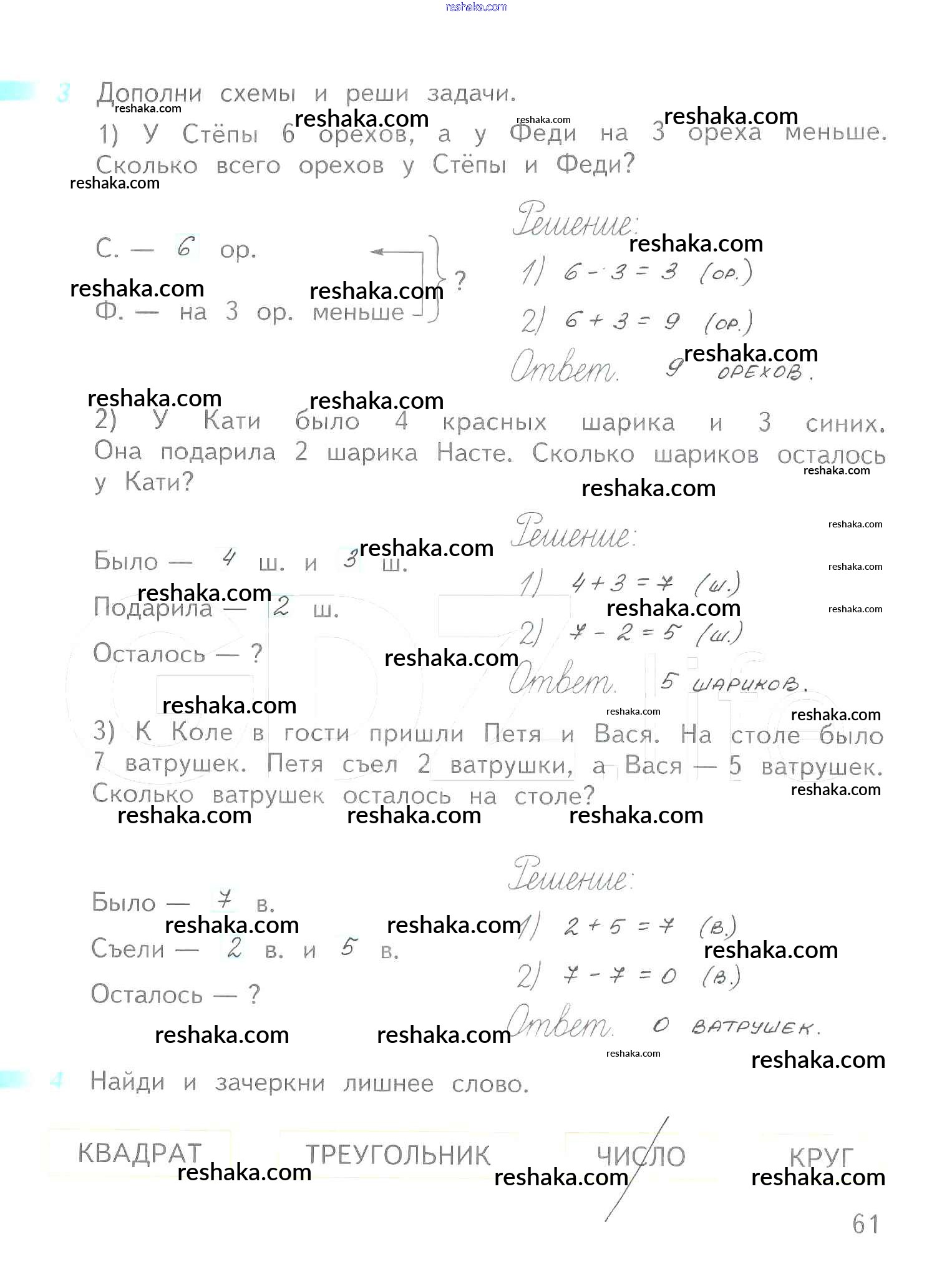 Решака - онлайн ответы Математика Дорофеев, Миракова за 1 класс Рабочая тетрадь ФГОС 2016 - 61