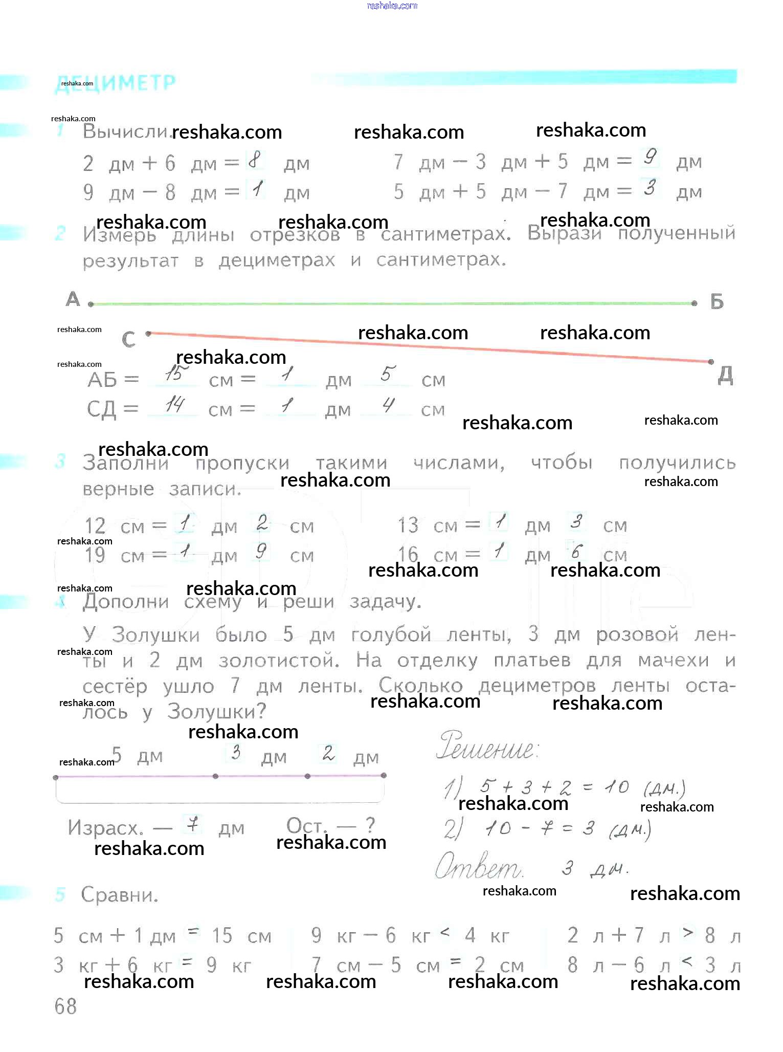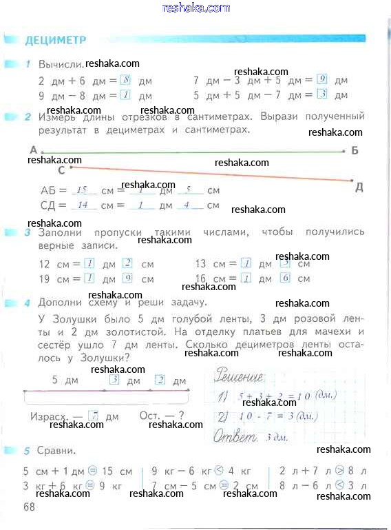 Решака - онлайн ответы Математика Дорофеев, Миракова за 1 класс Рабочая тетрадь ФГОС 2016 - 68