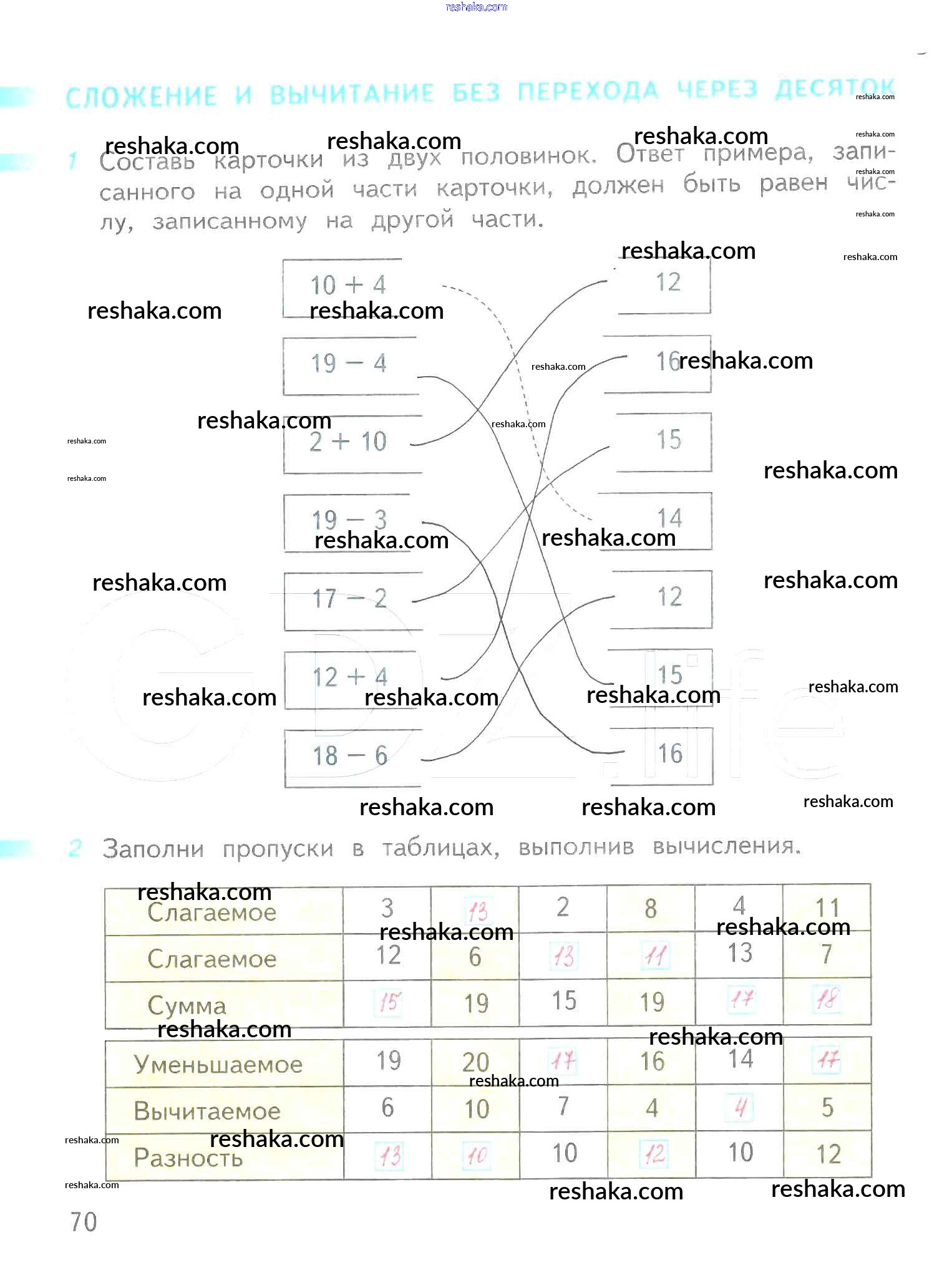 Решака - онлайн ответы Математика Дорофеев, Миракова за 1 класс Рабочая тетрадь ФГОС 2016 - 70