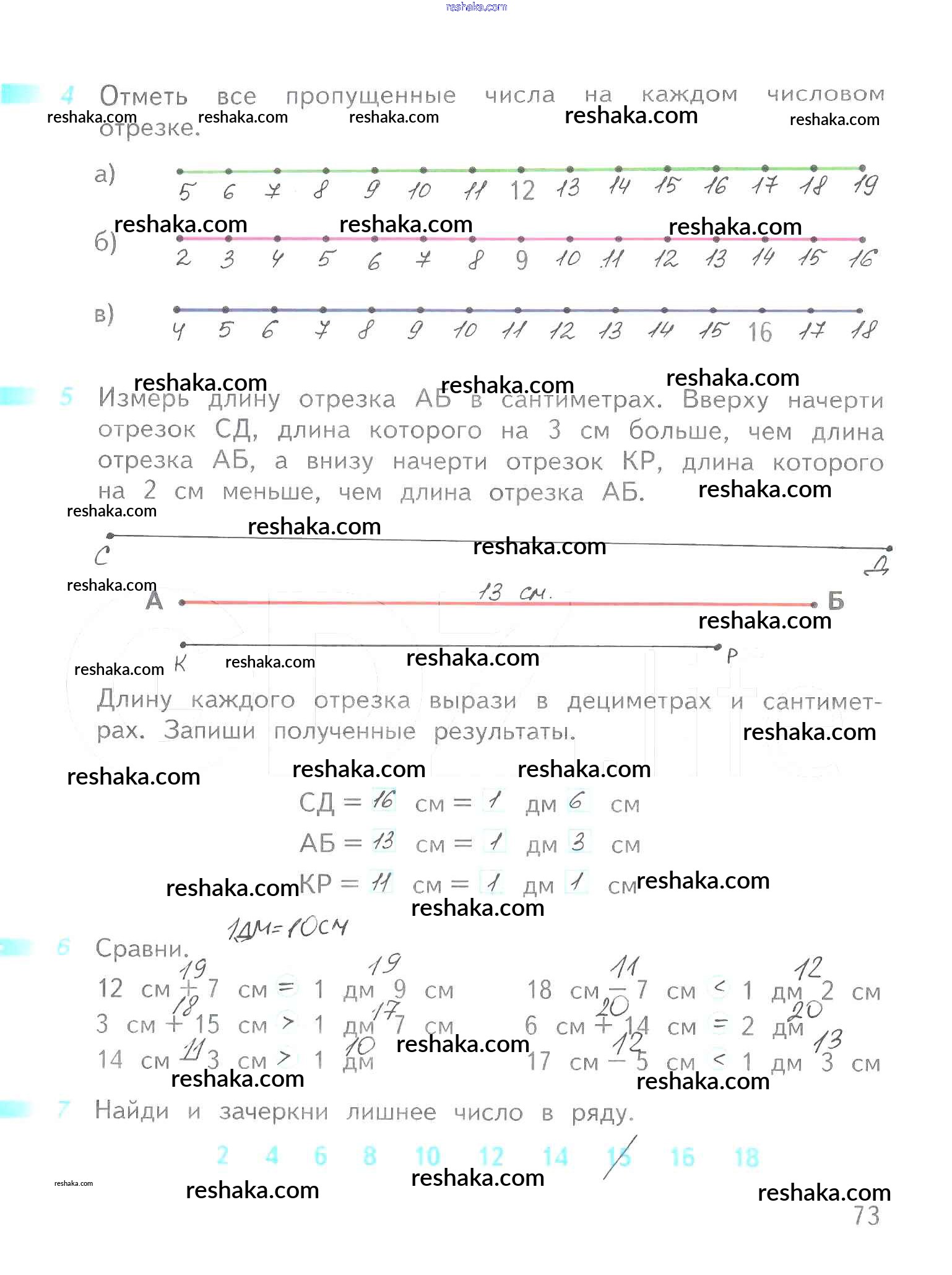 Решака - онлайн ответы Математика Дорофеев, Миракова за 1 класс Рабочая тетрадь ФГОС 2016 - 73