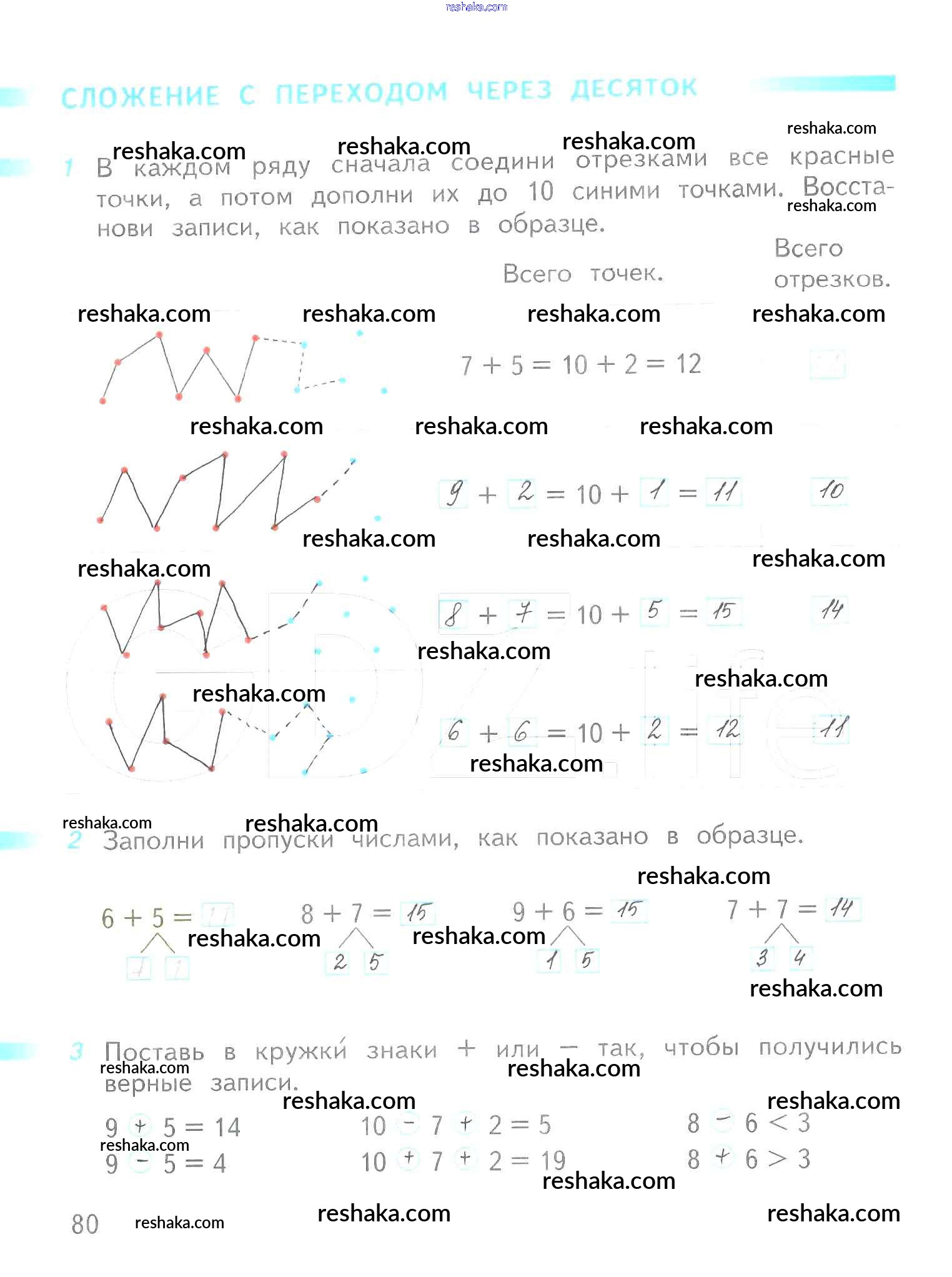 Решака - онлайн ответы Математика Дорофеев, Миракова за 1 класс Рабочая тетрадь ФГОС 2016 - 80