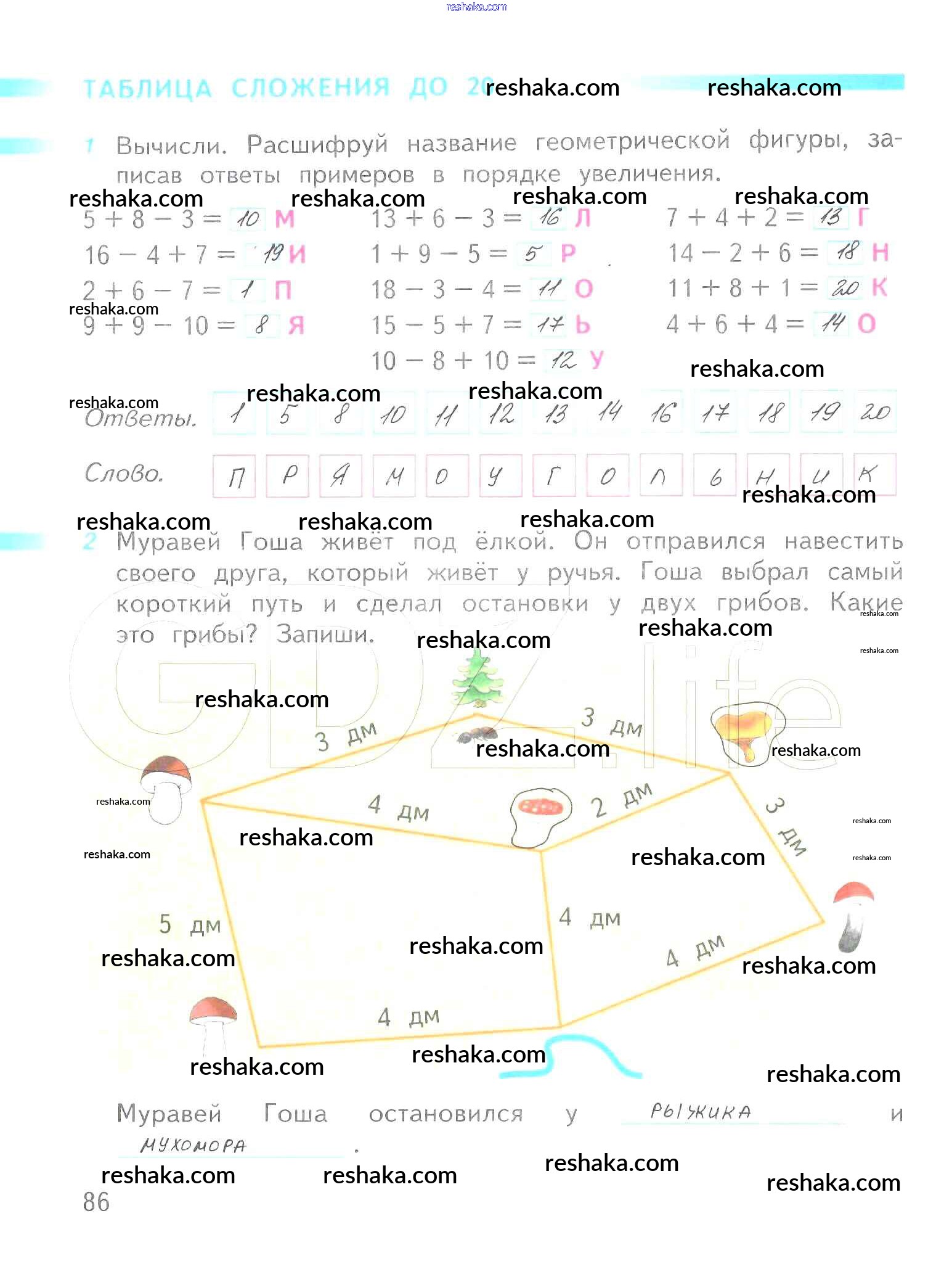 Решака - онлайн ответы Математика Дорофеев, Миракова за 1 класс Рабочая тетрадь ФГОС 2016 - 86