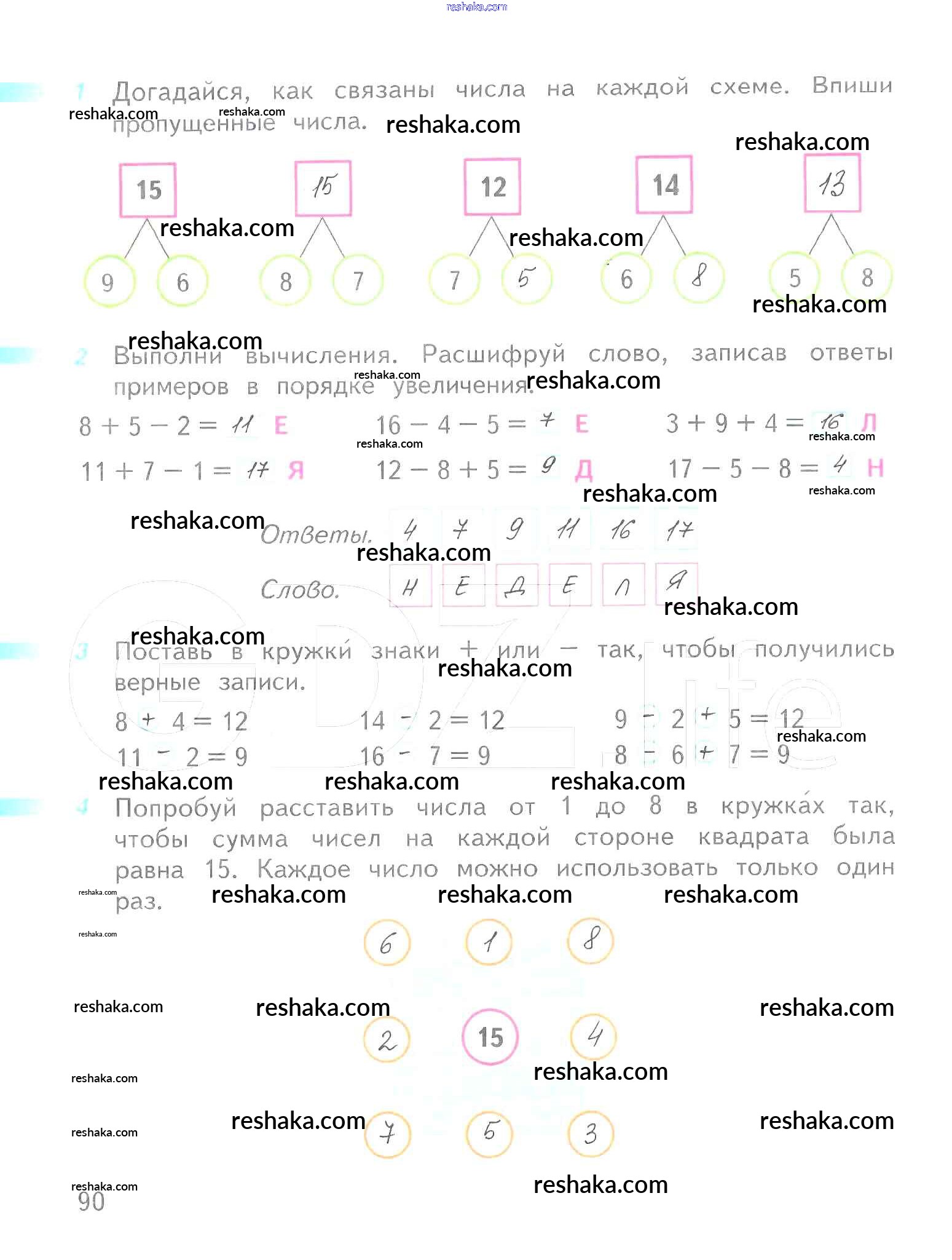 Решака - онлайн ответы Математика Дорофеев, Миракова за 1 класс Рабочая тетрадь ФГОС 2016 - 90