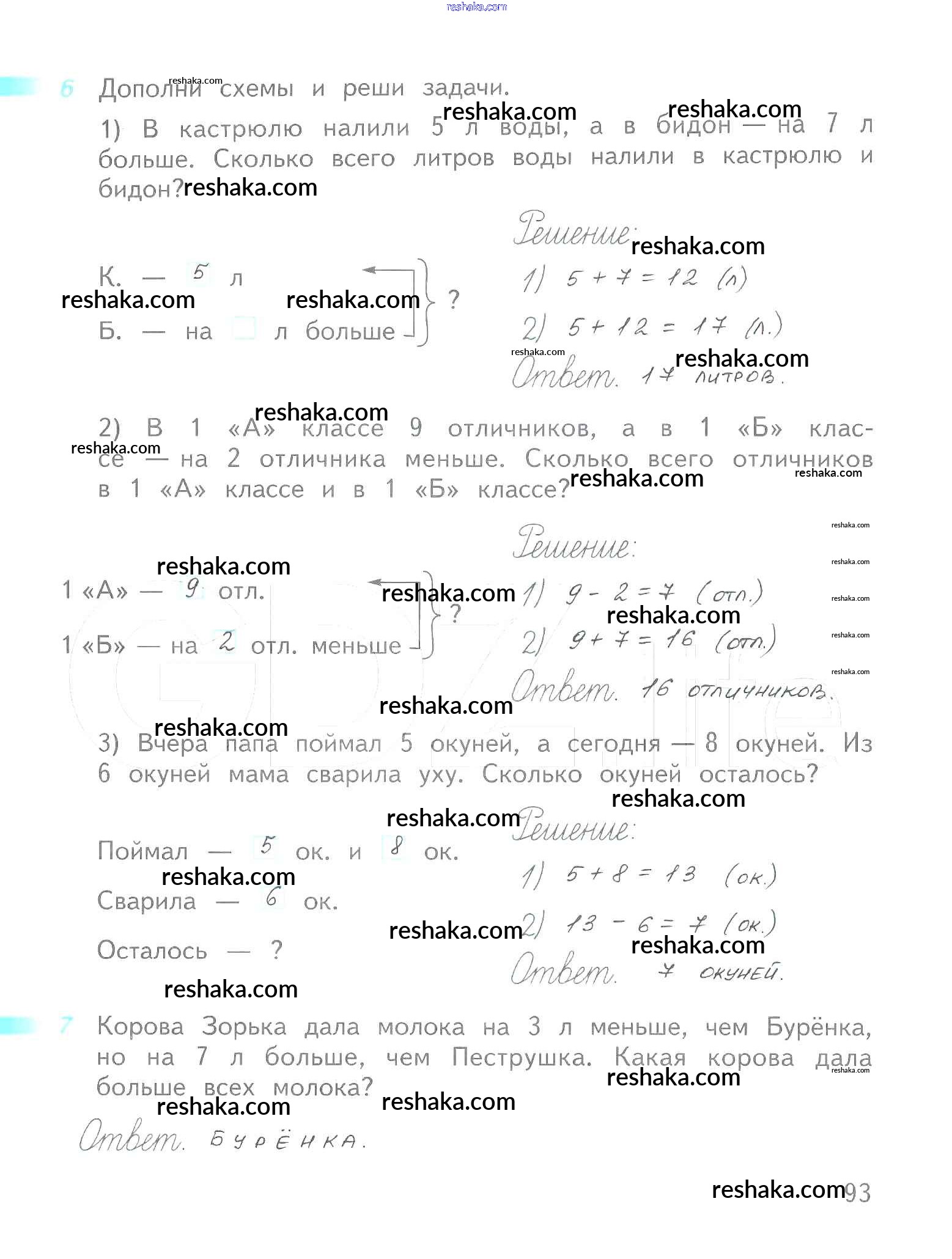 Решака - онлайн ответы Математика Дорофеев, Миракова за 1 класс Рабочая тетрадь ФГОС 2016 - 93