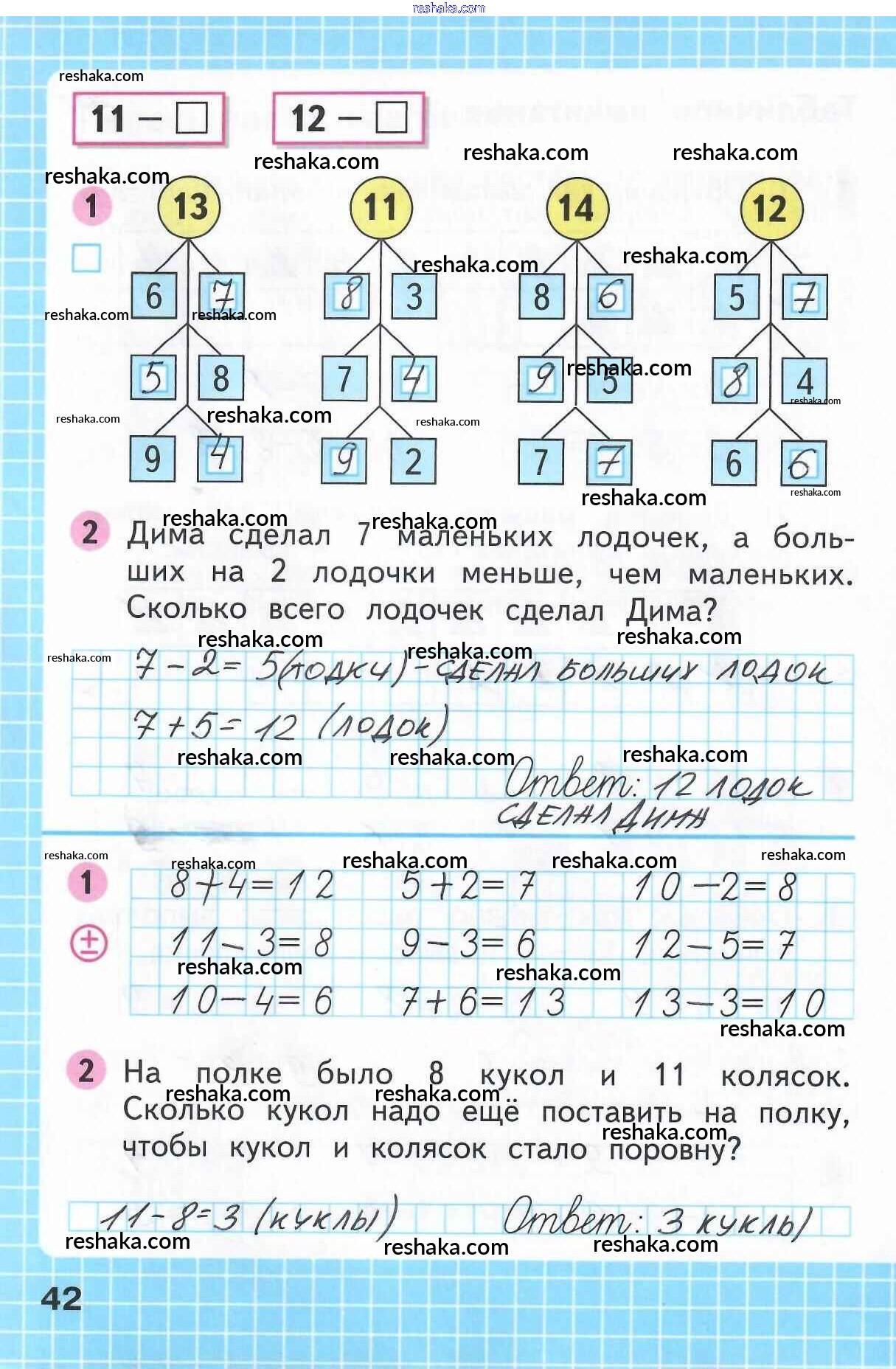 Решака - онлайн ответы Математика Моро, Волкова за 1 класс Рабочая тетрадь ФГОС 2016 - 42