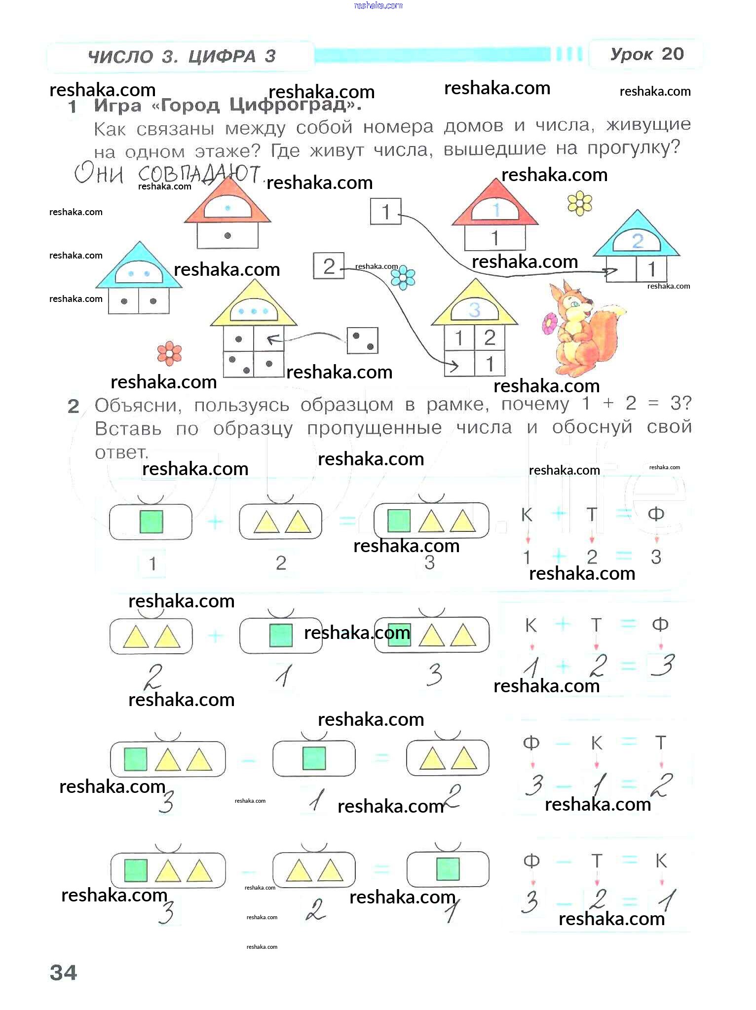 Решака - онлайн ответы Математика Петерсон за 1 класс Рабочая тетрадь ФГОС 2016 - 34