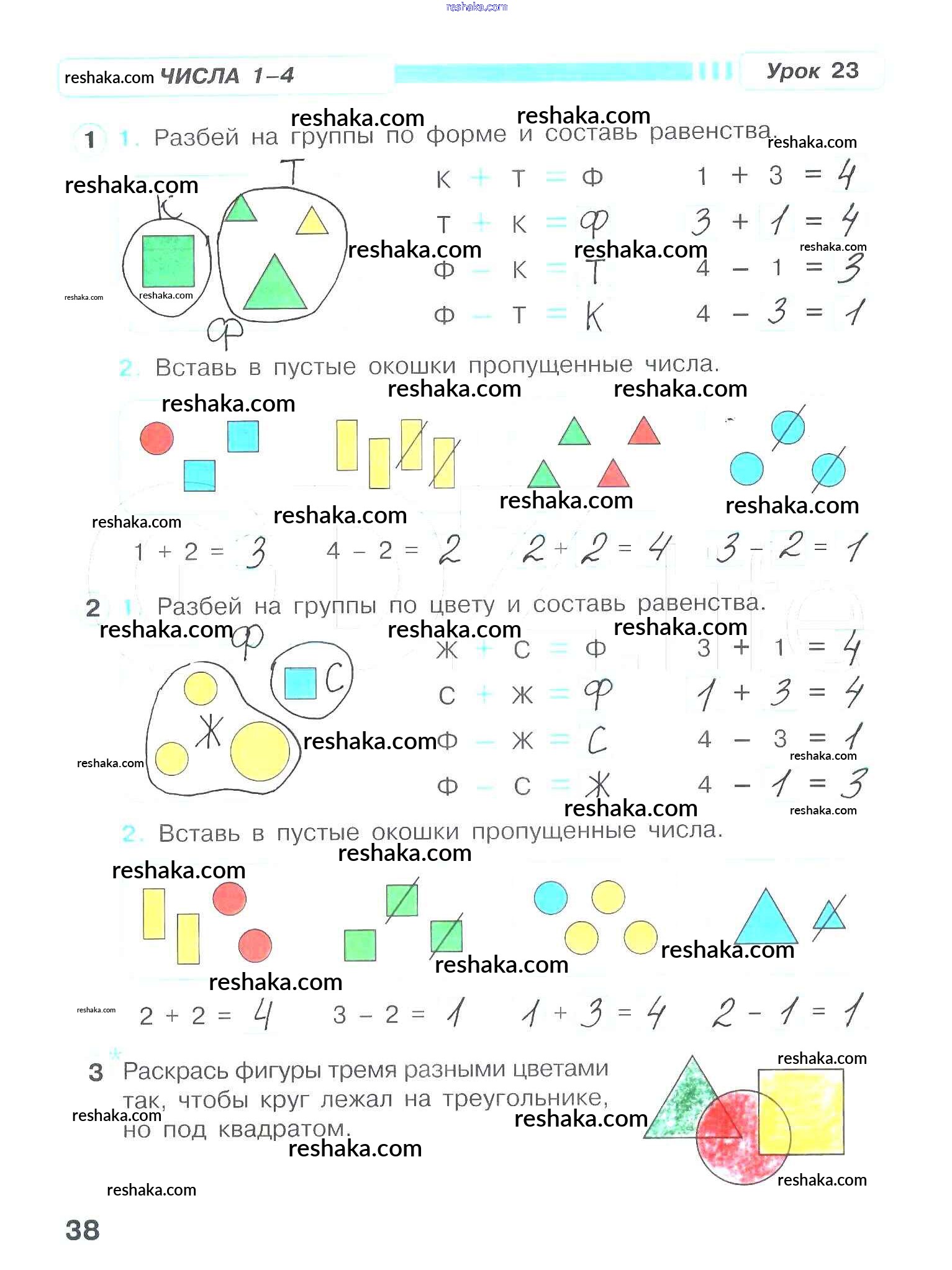 Решака - онлайн ответы Математика Петерсон за 1 класс Рабочая тетрадь ФГОС 2016 - 38
