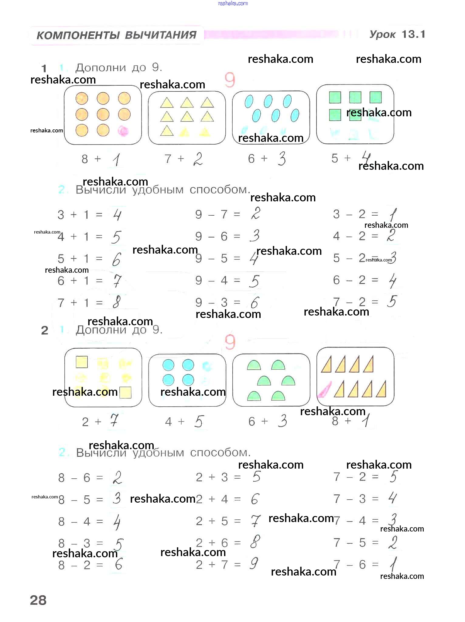Решака - онлайн ответы Математика Петерсон за 1 класс Рабочая тетрадь ФГОС 2016 - 28