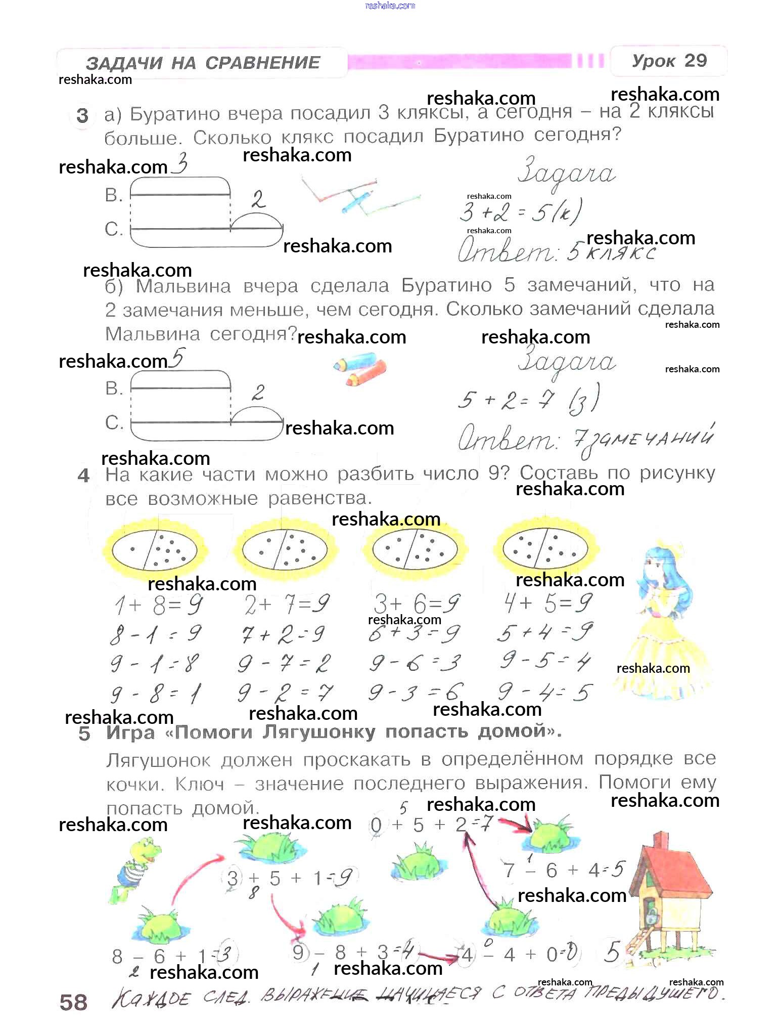 Решака - онлайн ответы Математика Петерсон за 1 класс Рабочая тетрадь ФГОС 2016 - 58