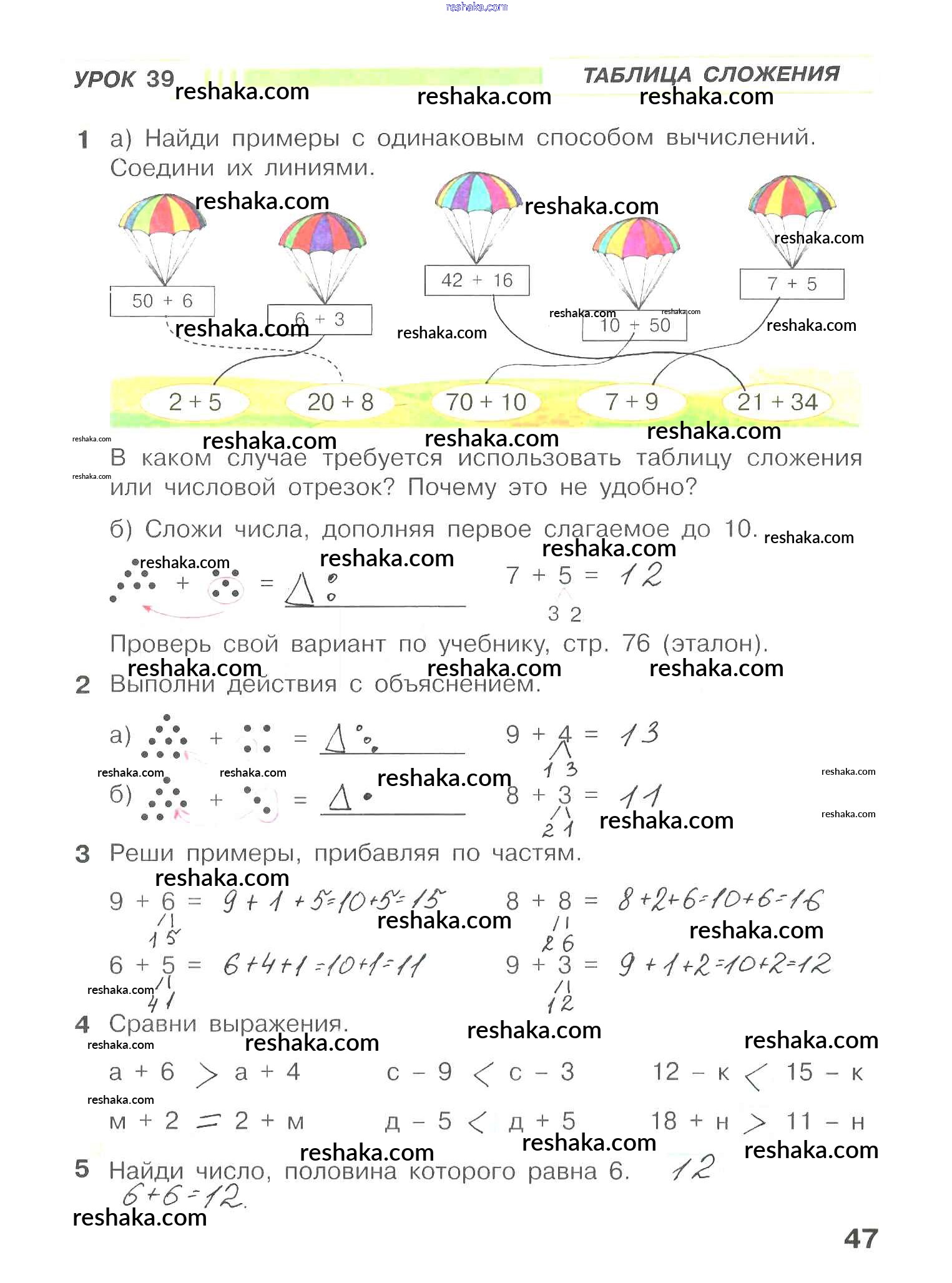 Решака - онлайн ответы Математика Петерсон за 1 класс Рабочая тетрадь ФГОС 2016 - 47