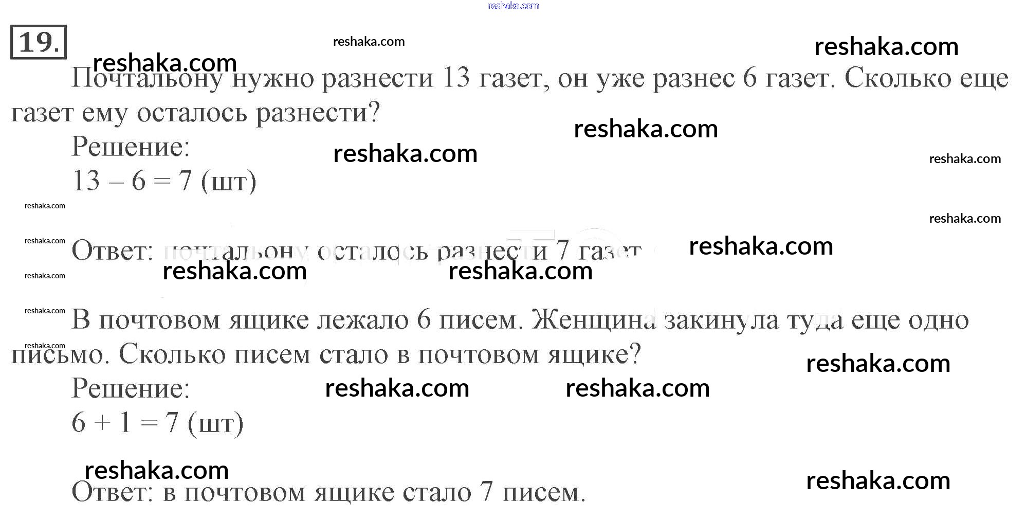 Решака - онлайн ответы Математика Рудницкая, Кочурова за 1 класс Учебник ФГОС 2016 - Упр.19