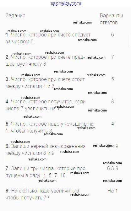 Решака - онлайн ответы Математика Волкова за 1 класс Проверочные работы ФГОС 2014 - 19