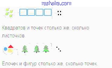 Нарисуй или дорисуй: квадратов и точек столько же, сколько листочков. (рис.1) ёлочек и фигур столько же, сколько точек. (рис.2)