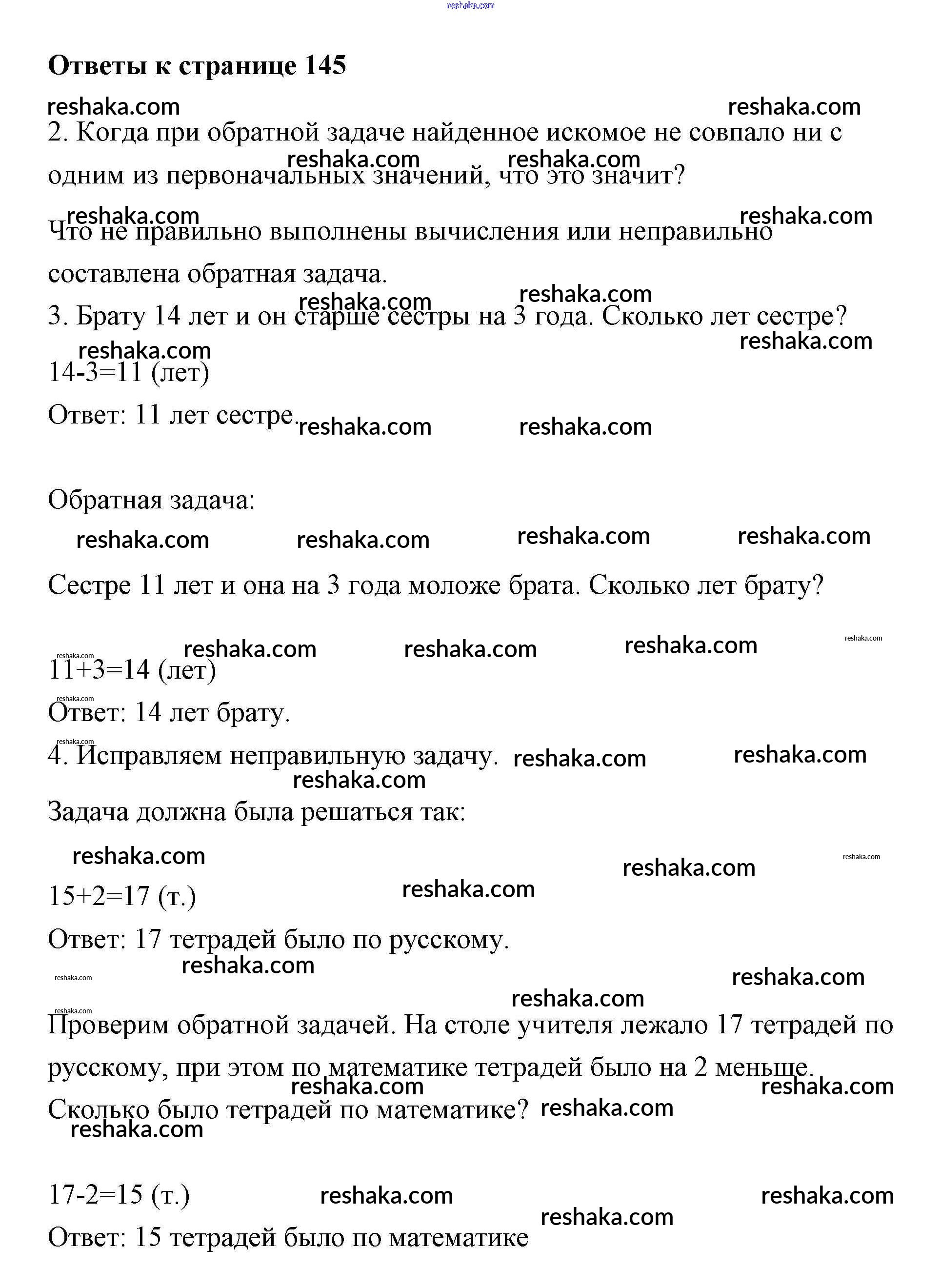 Решака - онлайн ответы Математика Чекин за 2 класс Учебник 2017 - 145