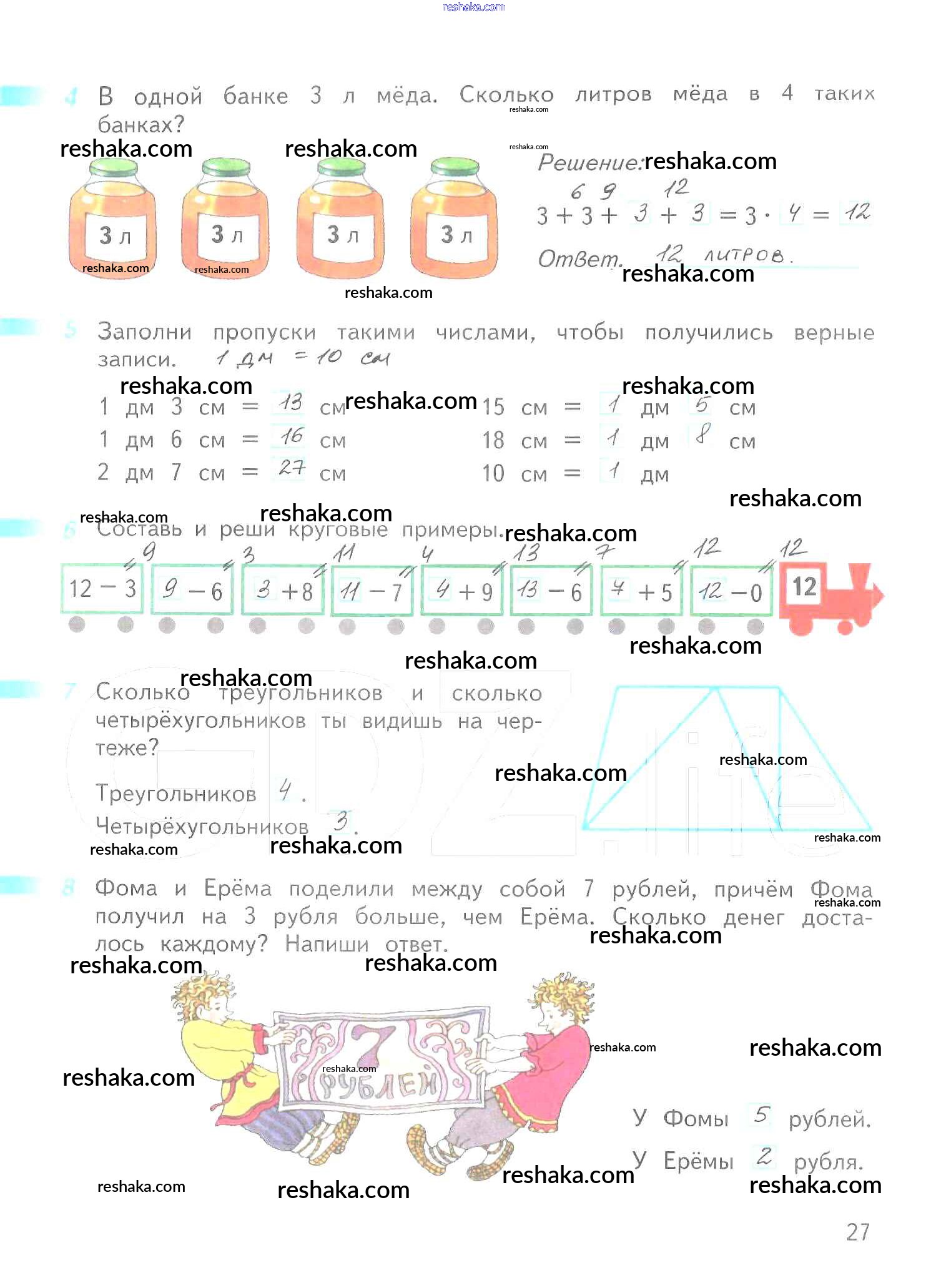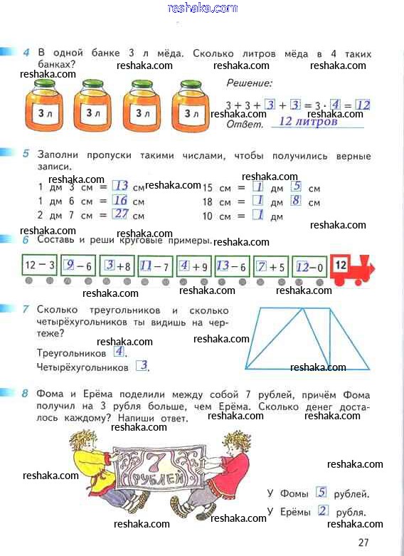 Решака - онлайн ответы Математика Дорофеев, Миракова за 2 класс Рабочая тетрадь ФГОС 2015 - 27