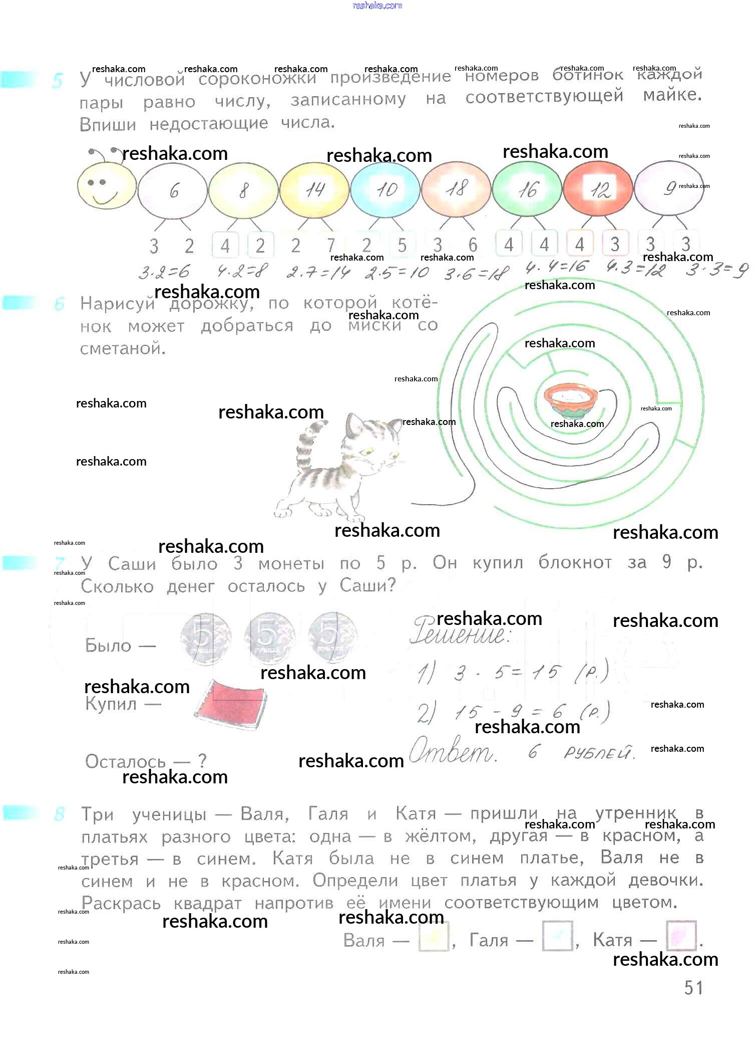 Решака - онлайн ответы Математика Дорофеев, Миракова за 2 класс Рабочая тетрадь ФГОС 2015 - 51