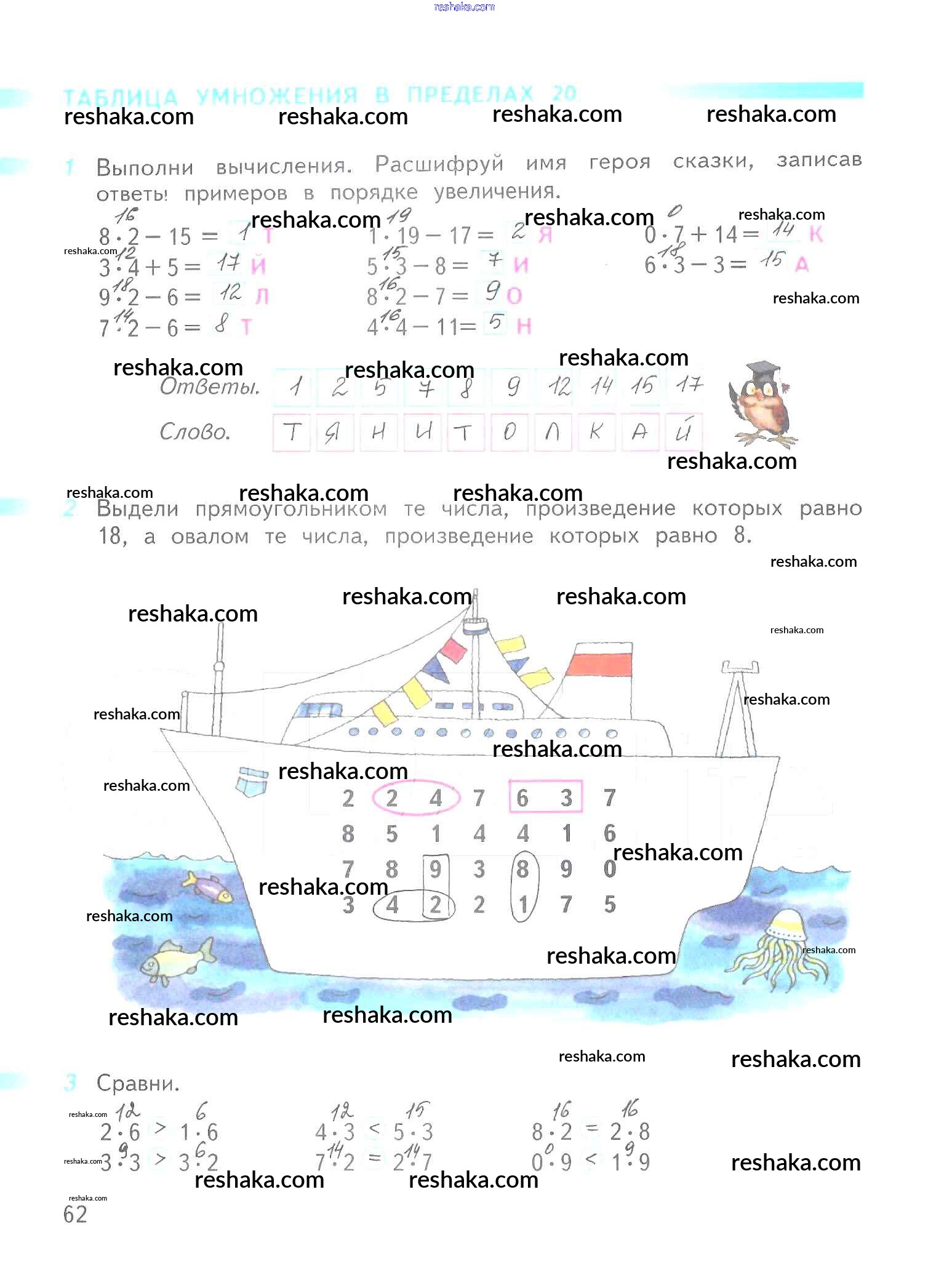 Решака - онлайн ответы Математика Дорофеев, Миракова за 2 класс Рабочая тетрадь ФГОС 2015 - 62