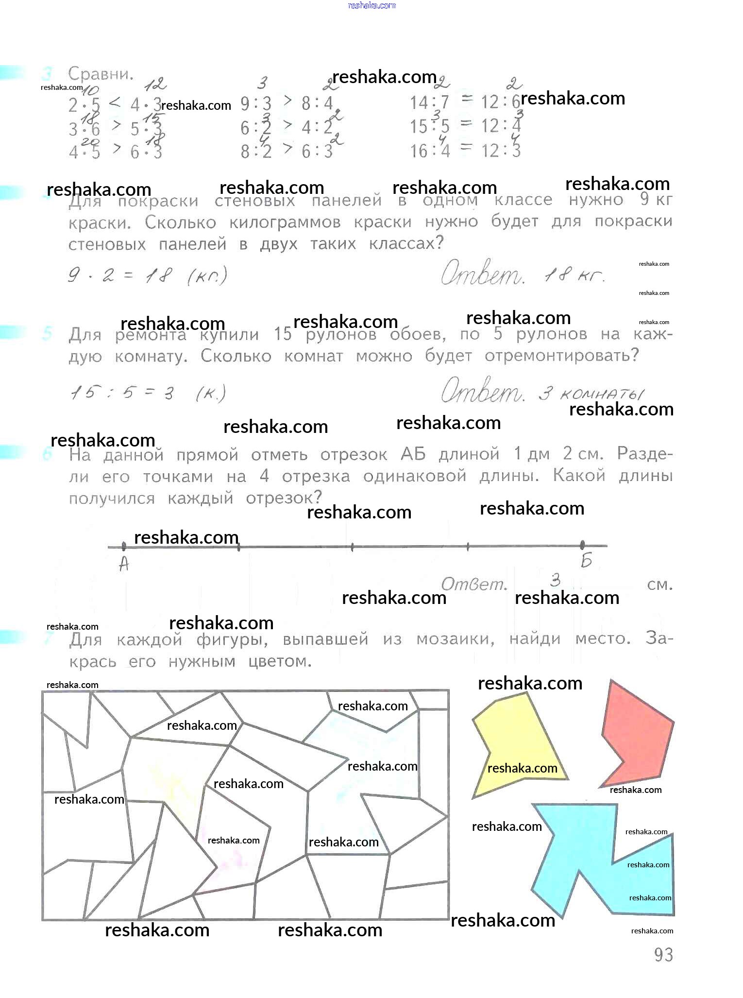 Решака - онлайн ответы Математика Дорофеев, Миракова за 2 класс Рабочая тетрадь ФГОС 2015 - 93
