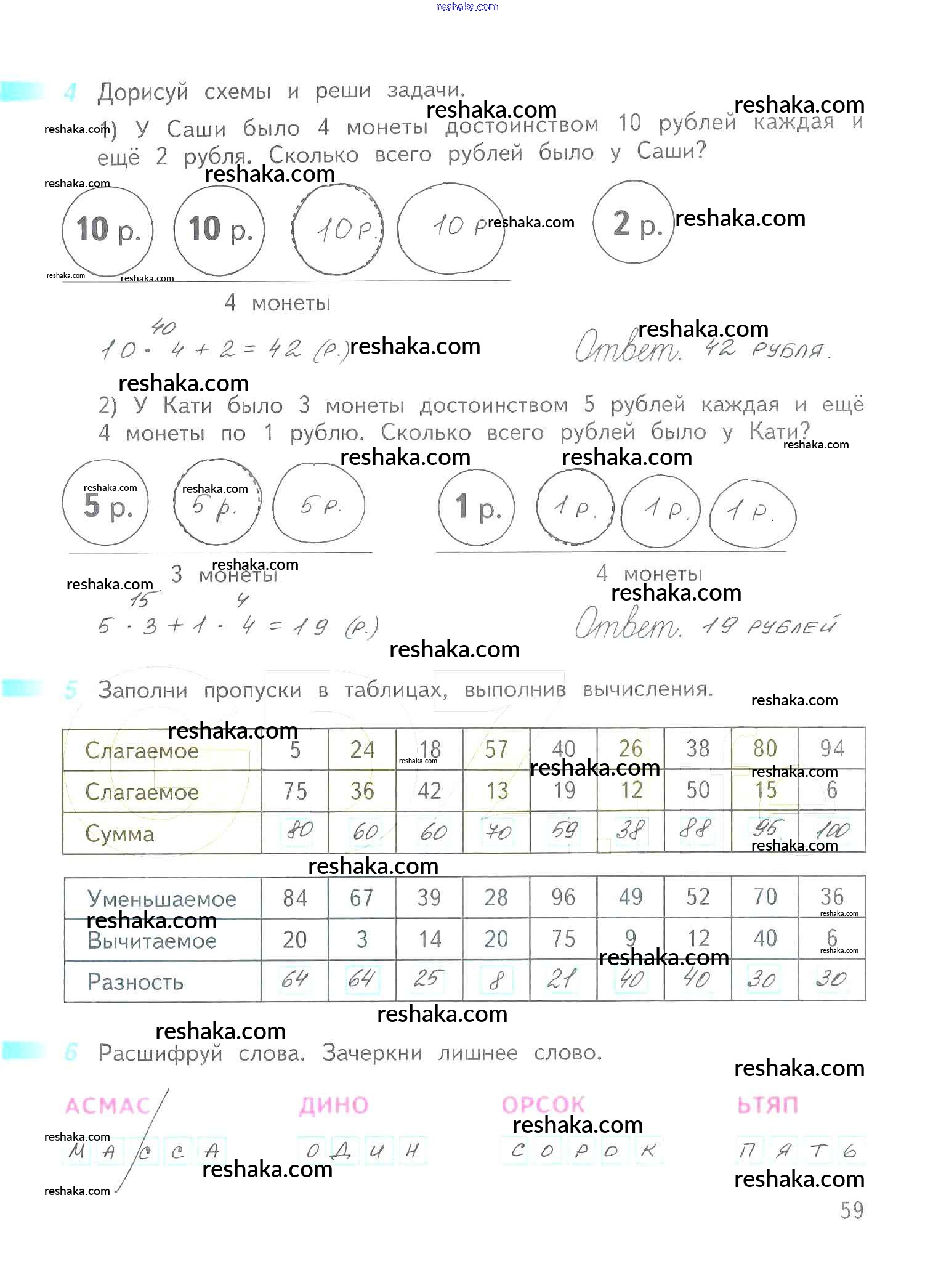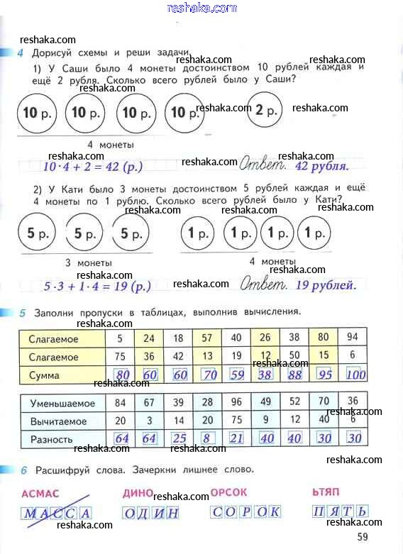 Решака - онлайн ответы Математика Дорофеев, Миракова за 2 класс Рабочая тетрадь ФГОС 2015 - 59