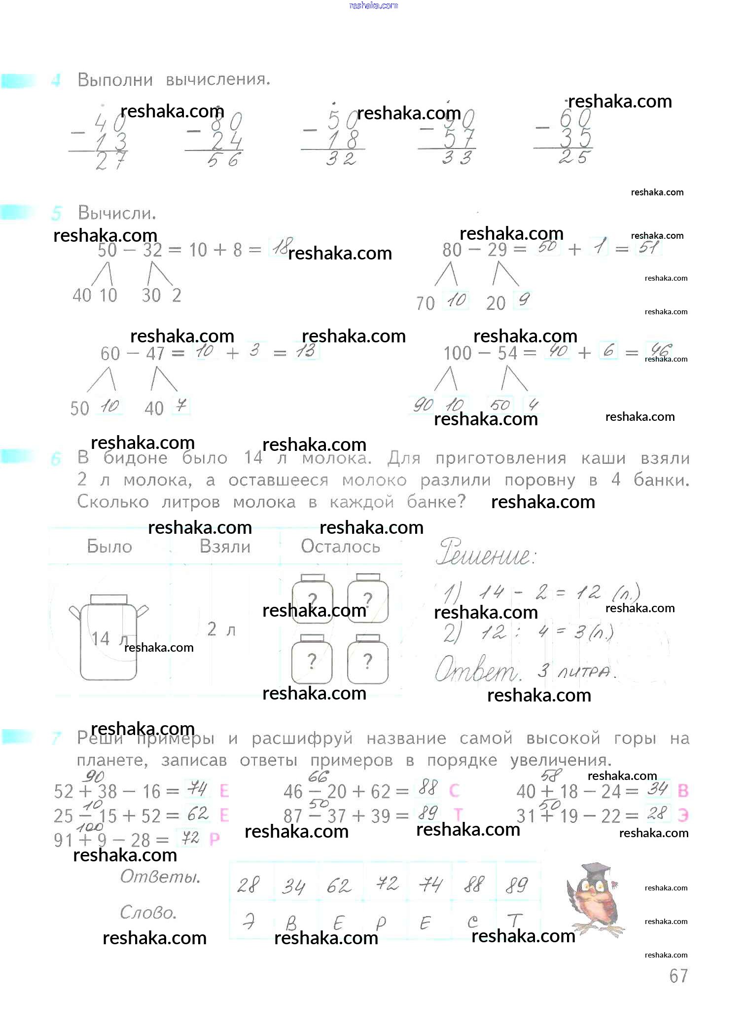Решака - онлайн ответы Математика Дорофеев, Миракова за 2 класс Рабочая тетрадь ФГОС 2015 - 67