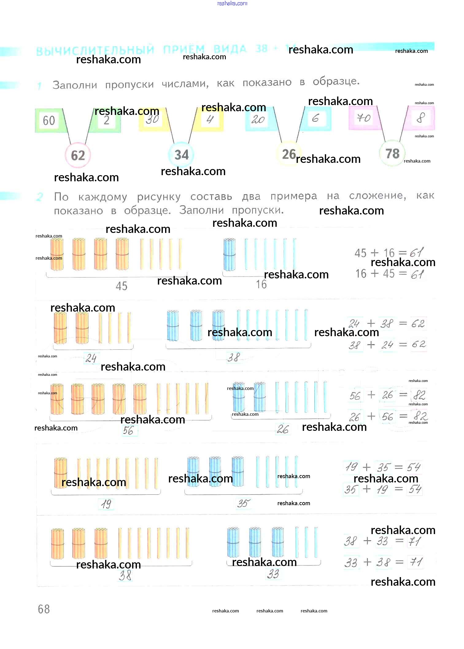 Решака - онлайн ответы Математика Дорофеев, Миракова за 2 класс Рабочая тетрадь ФГОС 2015 - 68