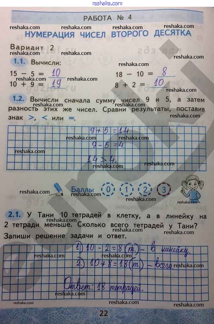 Решака - онлайн ответы Математика Гусева, Курникова за 2 класс Зачётные работы ФГОС 2016 - 22