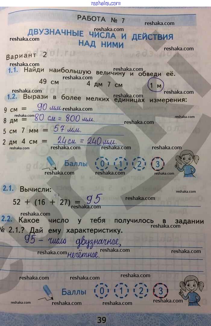 Решака - онлайн ответы Математика Гусева, Курникова за 2 класс Зачётные работы ФГОС 2016 - 39