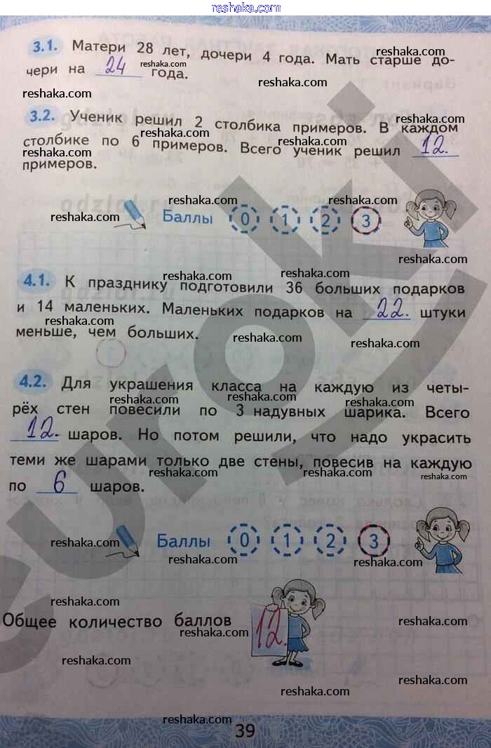 Решака - онлайн ответы Математика Гусева, Курникова за 2 класс Зачётные работы ФГОС 2016 - 39