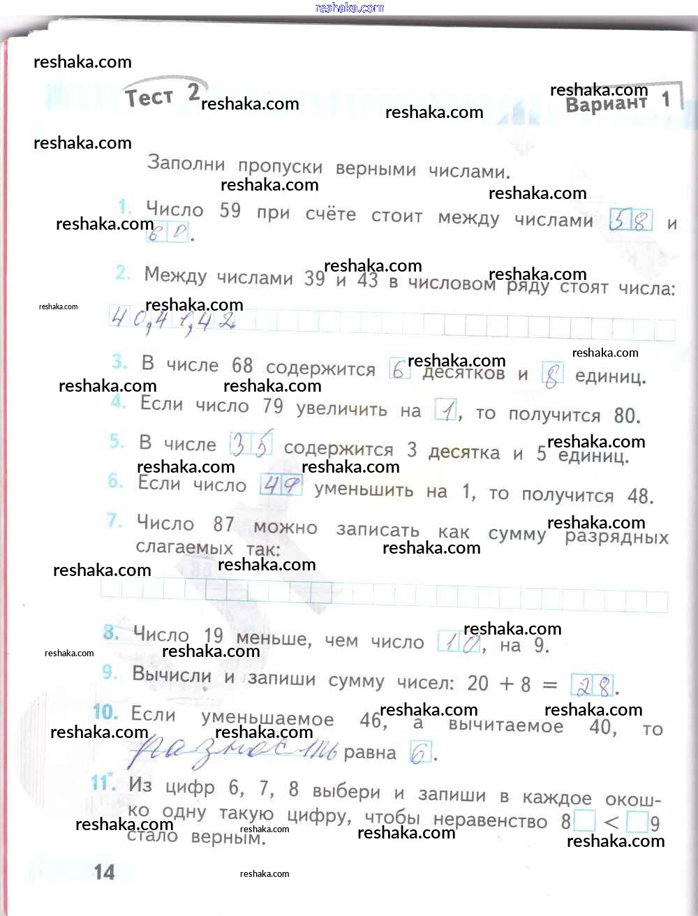 Решака - онлайн ответы Математика Волкова за 2 класс Проверочные работы ФГОС 2014 - 14