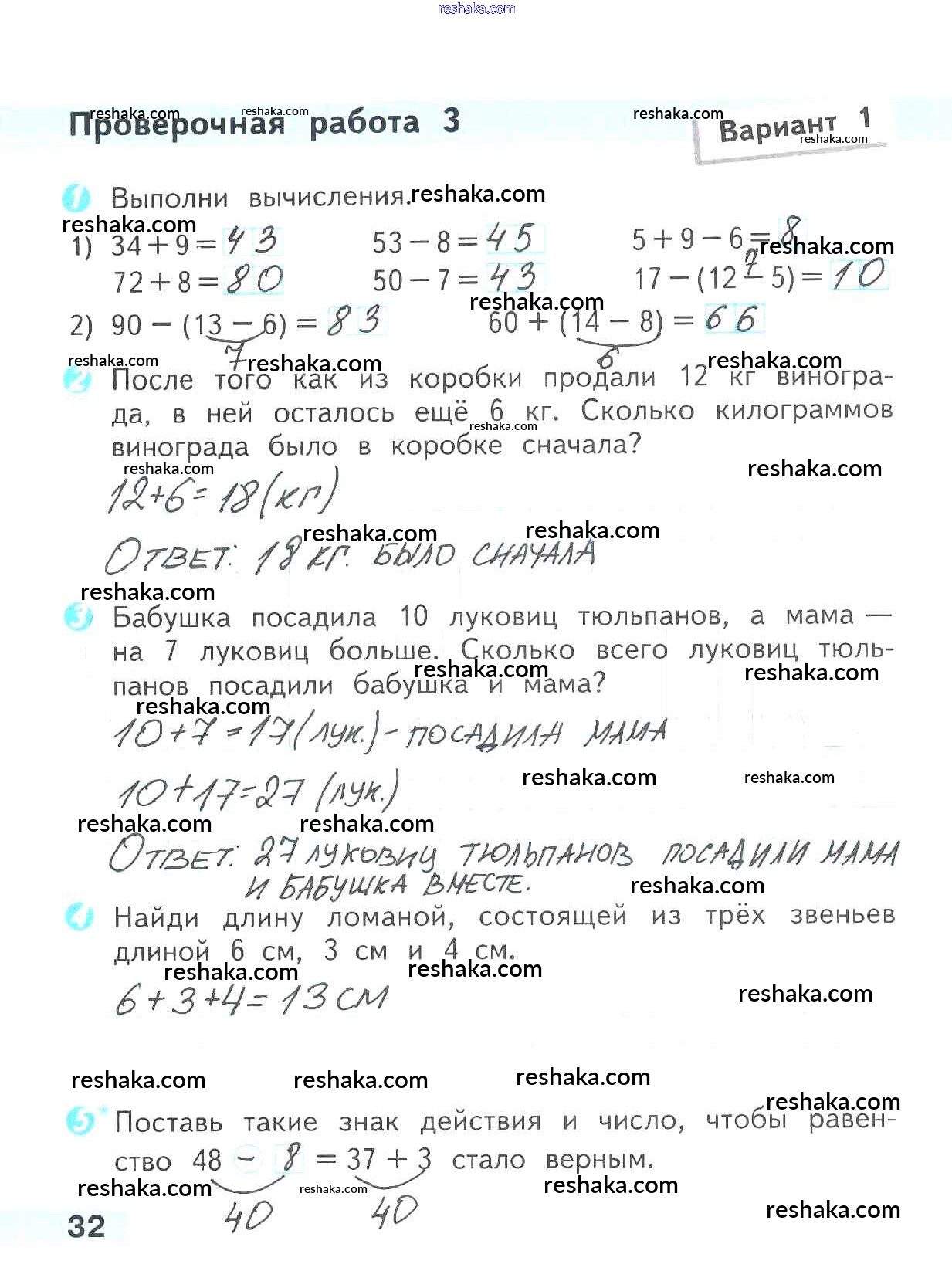 Решака - онлайн ответы Математика Волкова за 2 класс Проверочные работы ФГОС 2014 - 32
