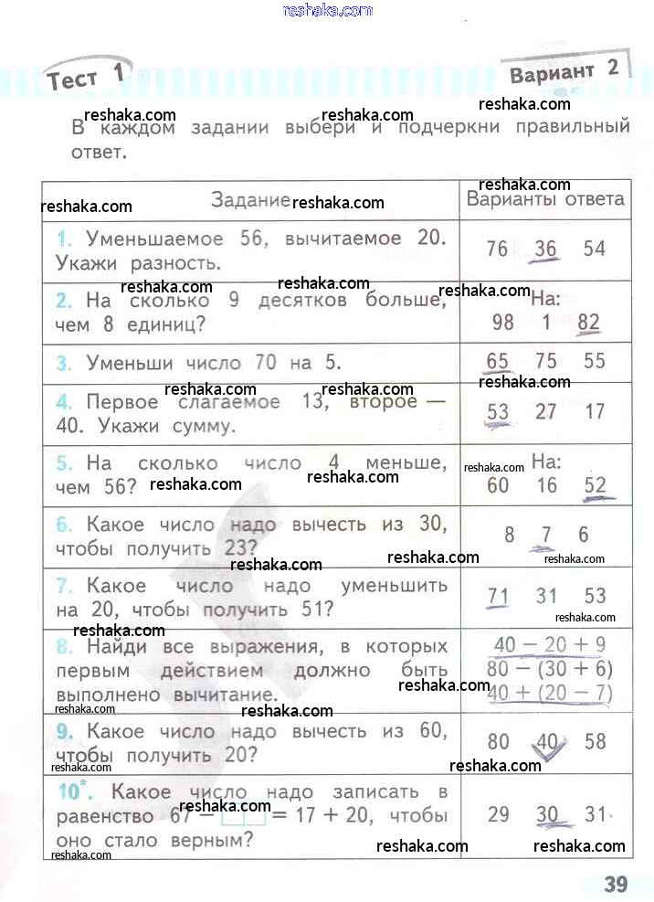 Решака - онлайн ответы Математика Волкова за 2 класс Проверочные работы ФГОС 2014 - 39