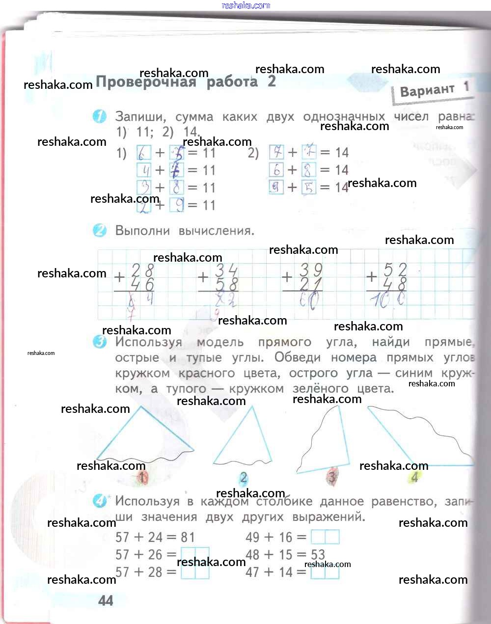 Решака - онлайн ответы Математика Волкова за 2 класс Проверочные работы ФГОС 2014 - 44
