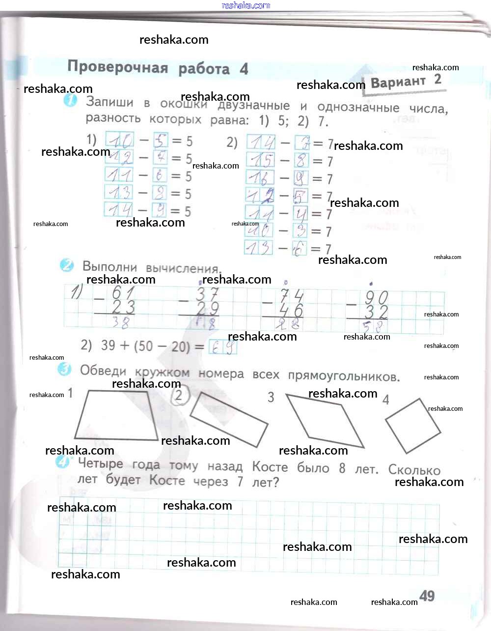 Решака - онлайн ответы Математика Волкова за 2 класс Проверочные работы ФГОС 2014 - 49