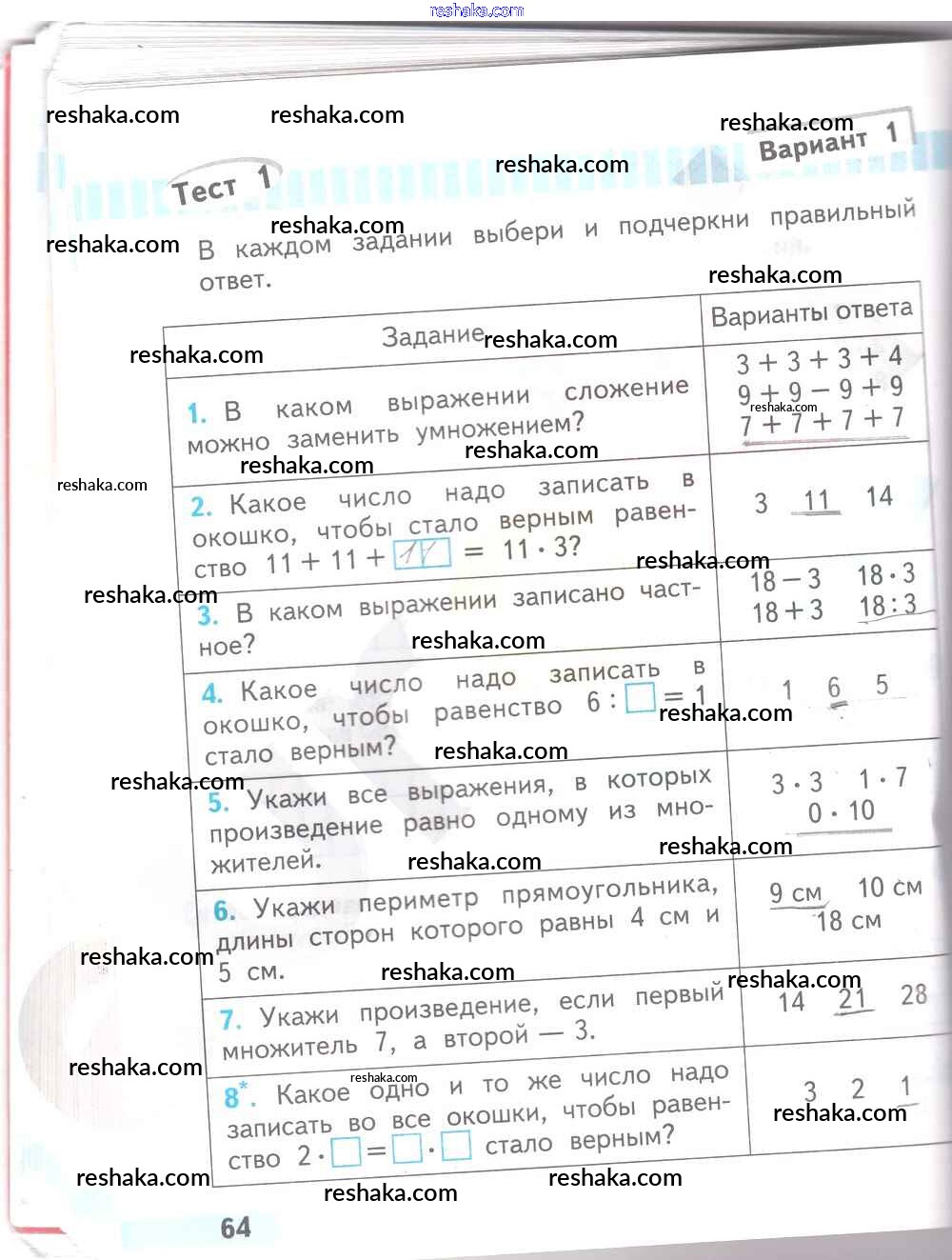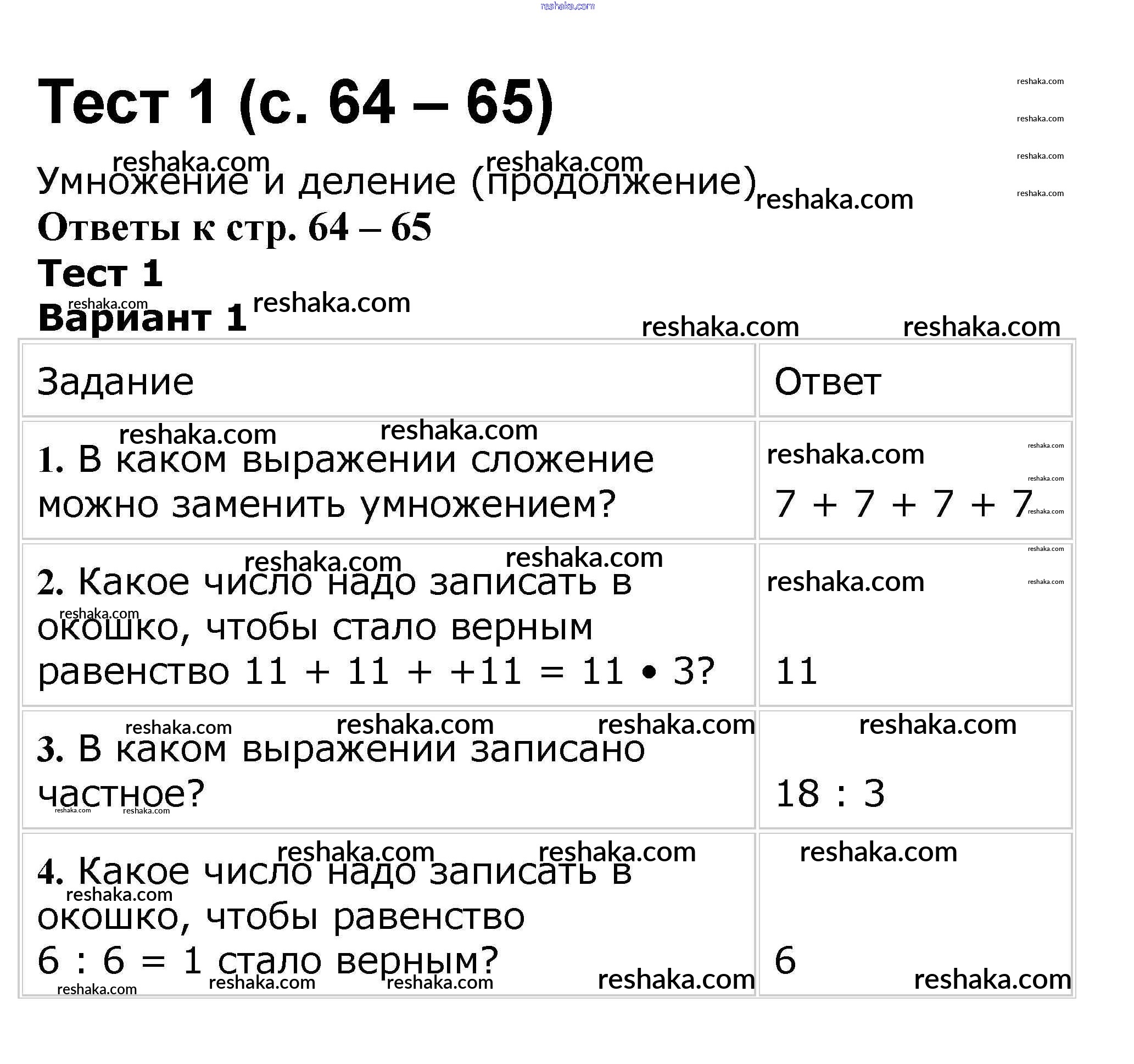 Решака - онлайн ответы Математика Волкова за 2 класс Проверочные работы ФГОС 2014 - 64