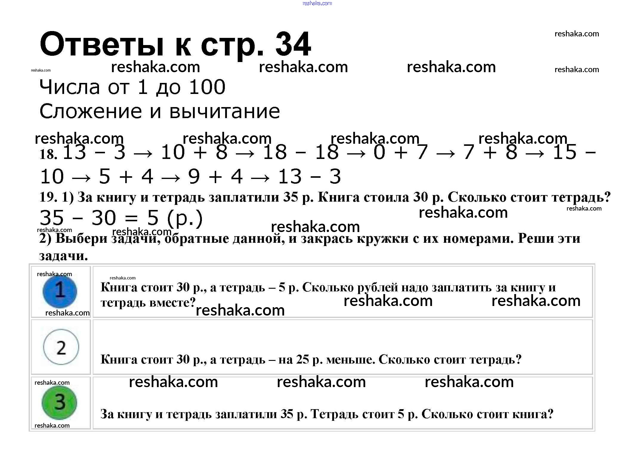 Решака - онлайн ответы Математика Волкова, Моро за 2 класс Рабочая тетрадь ФГОС 2016 - 34
