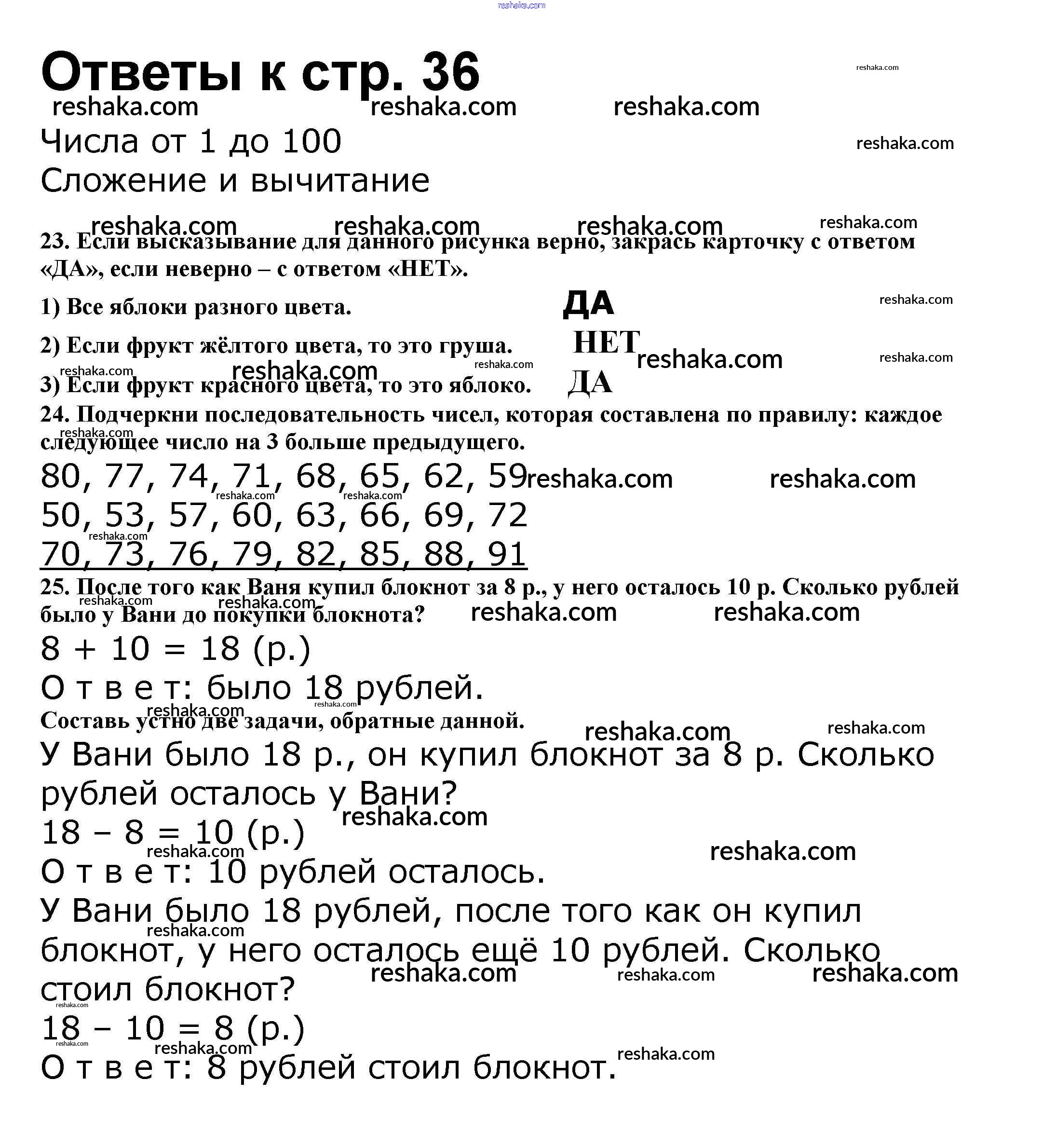 Решака - онлайн ответы Математика Волкова, Моро за 2 класс Рабочая тетрадь ФГОС 2016 - 36