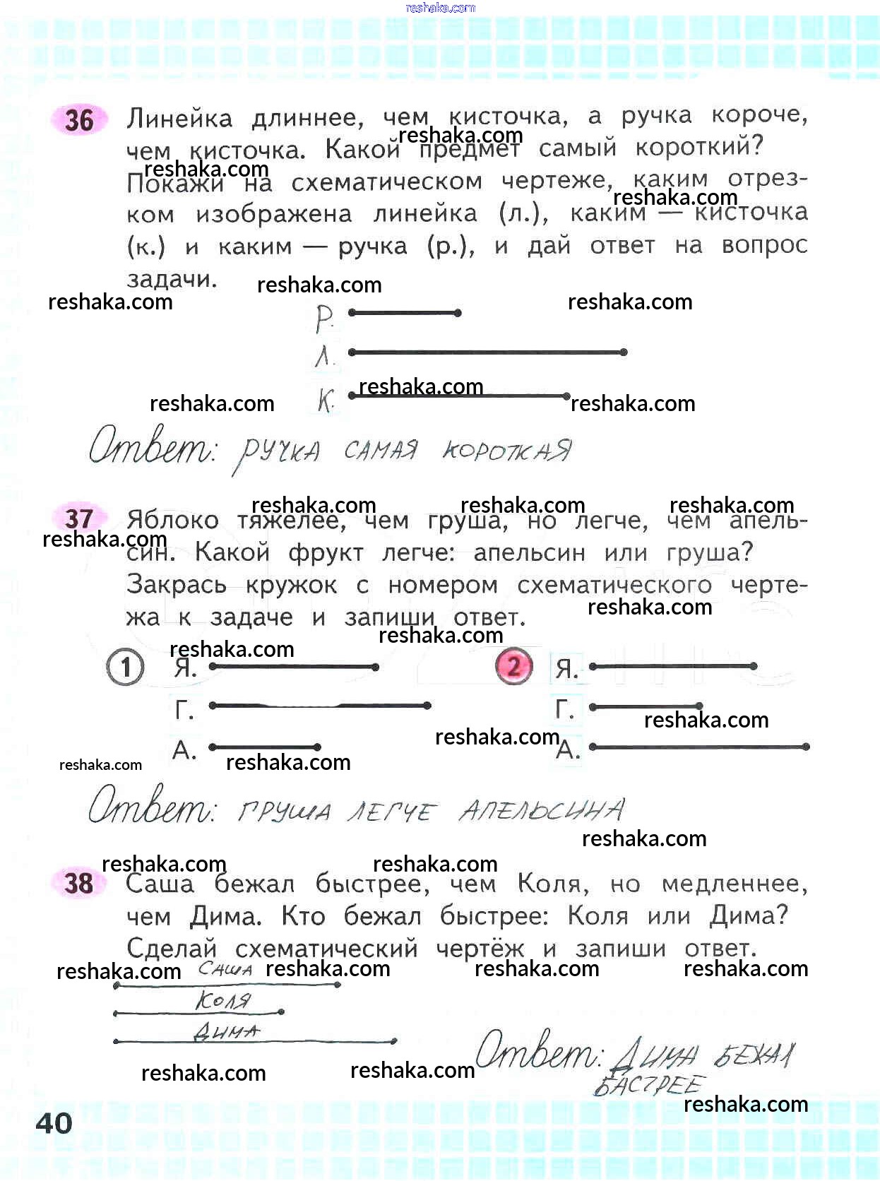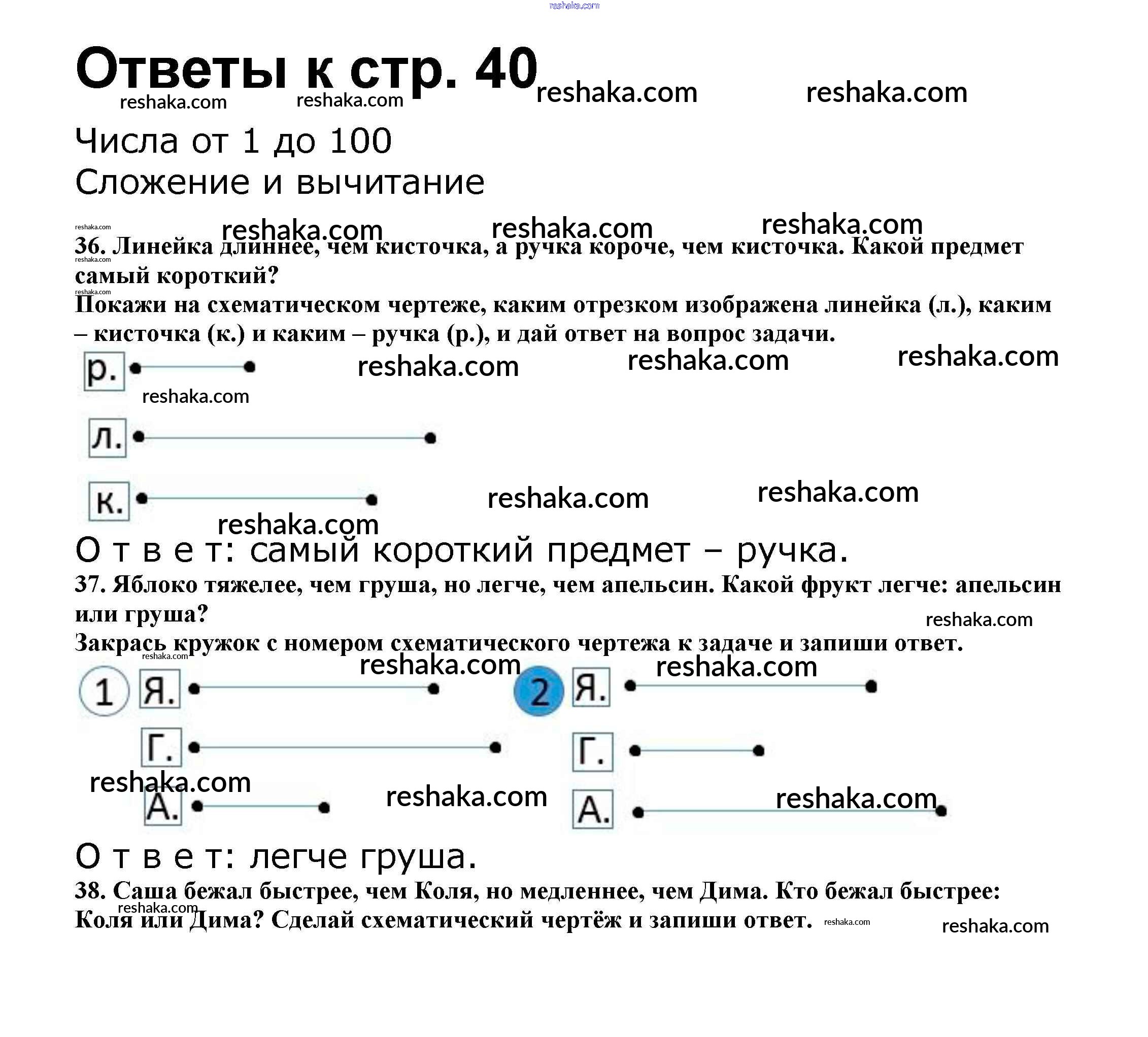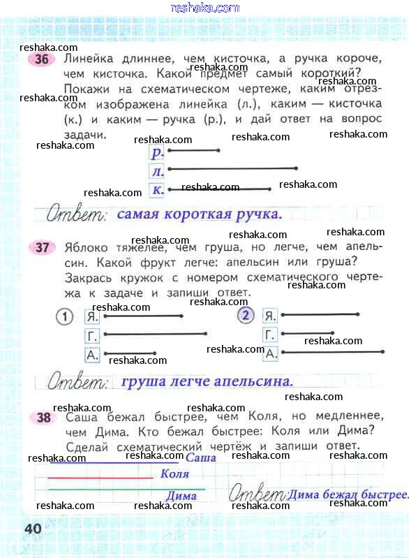 Решака - онлайн ответы Математика Волкова, Моро за 2 класс Рабочая тетрадь ФГОС 2016 - 40