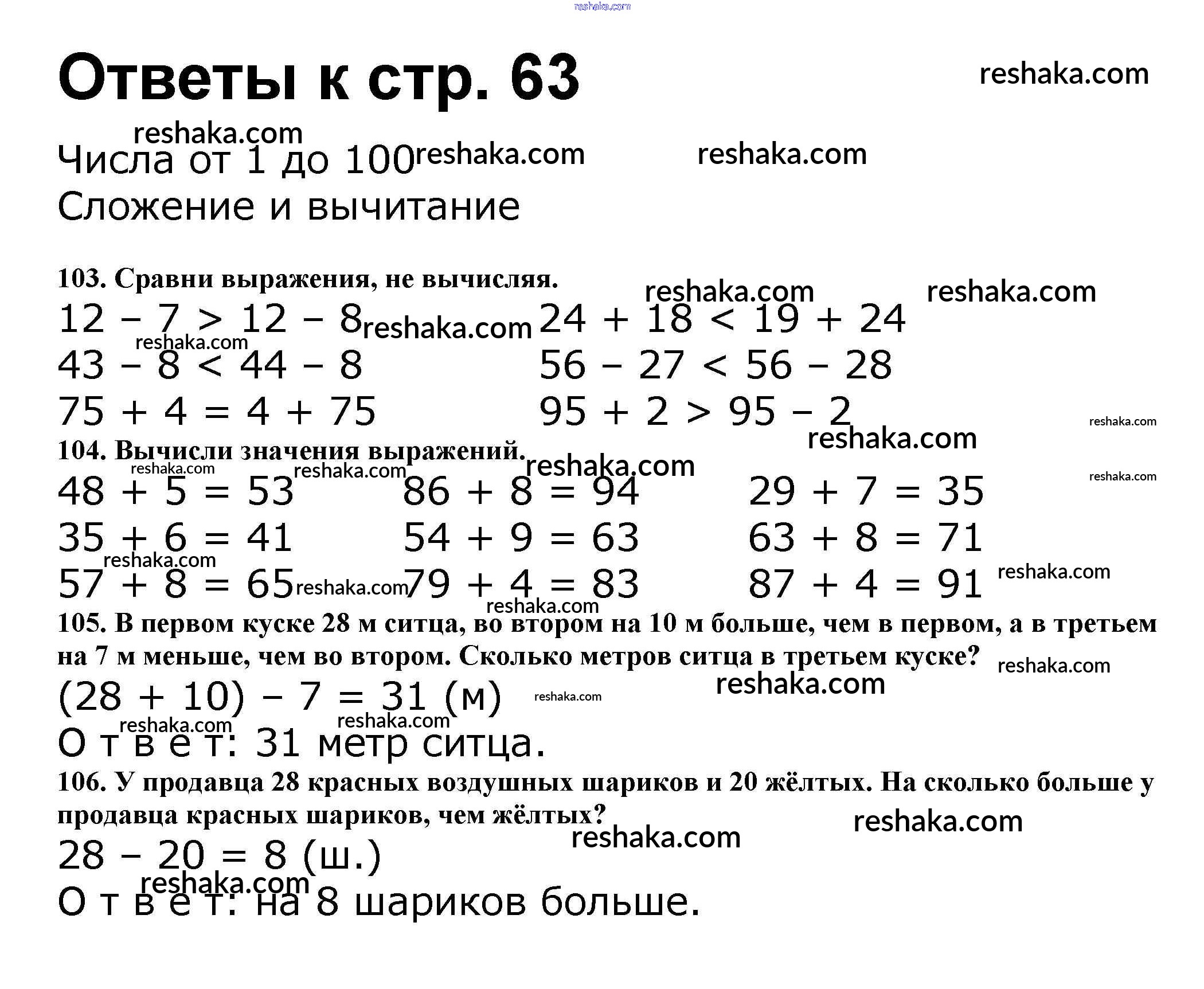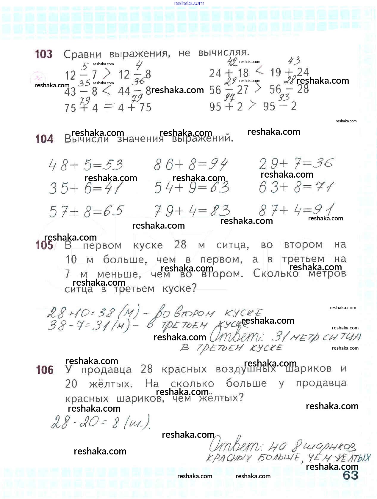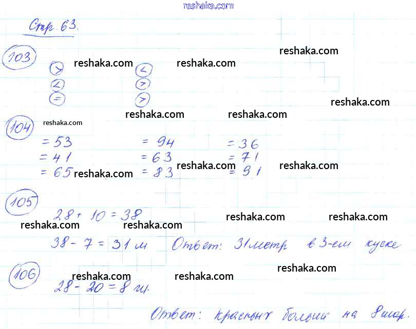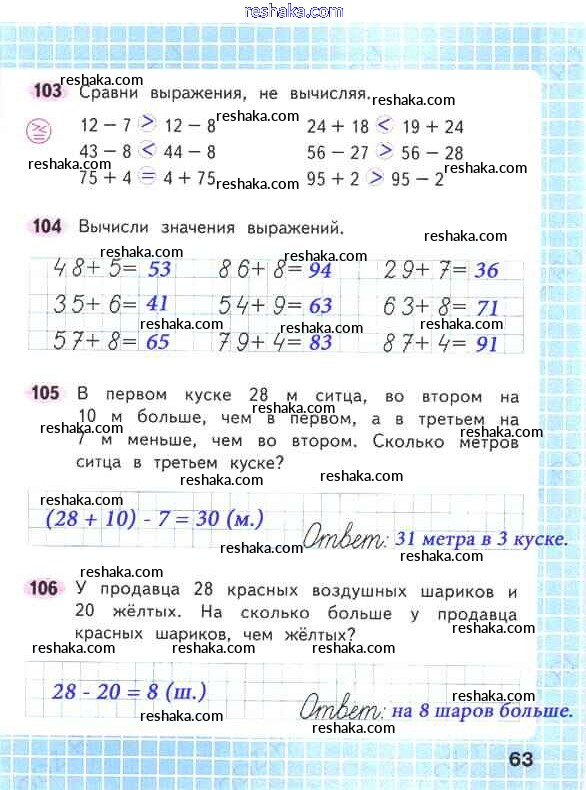 Решака - онлайн ответы Математика Волкова, Моро за 2 класс Рабочая тетрадь ФГОС 2016 - 63