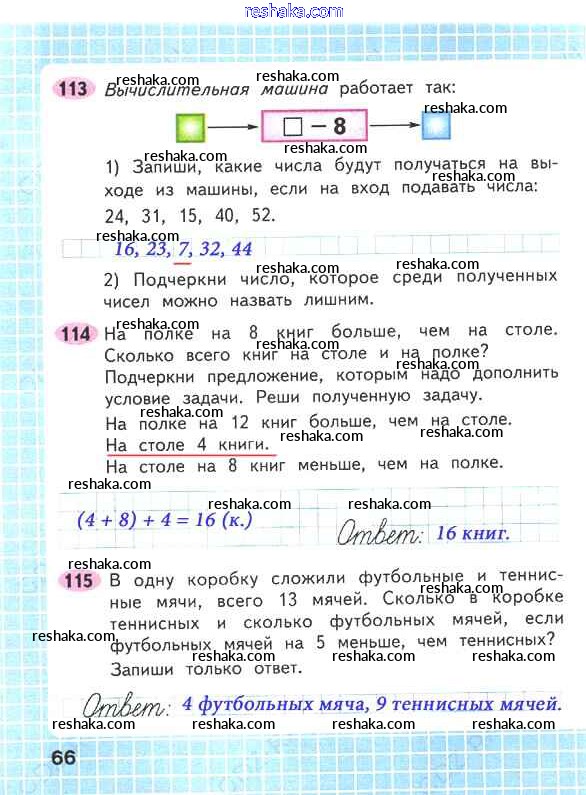 Решака - онлайн ответы Математика Волкова, Моро за 2 класс Рабочая тетрадь ФГОС 2016 - 66