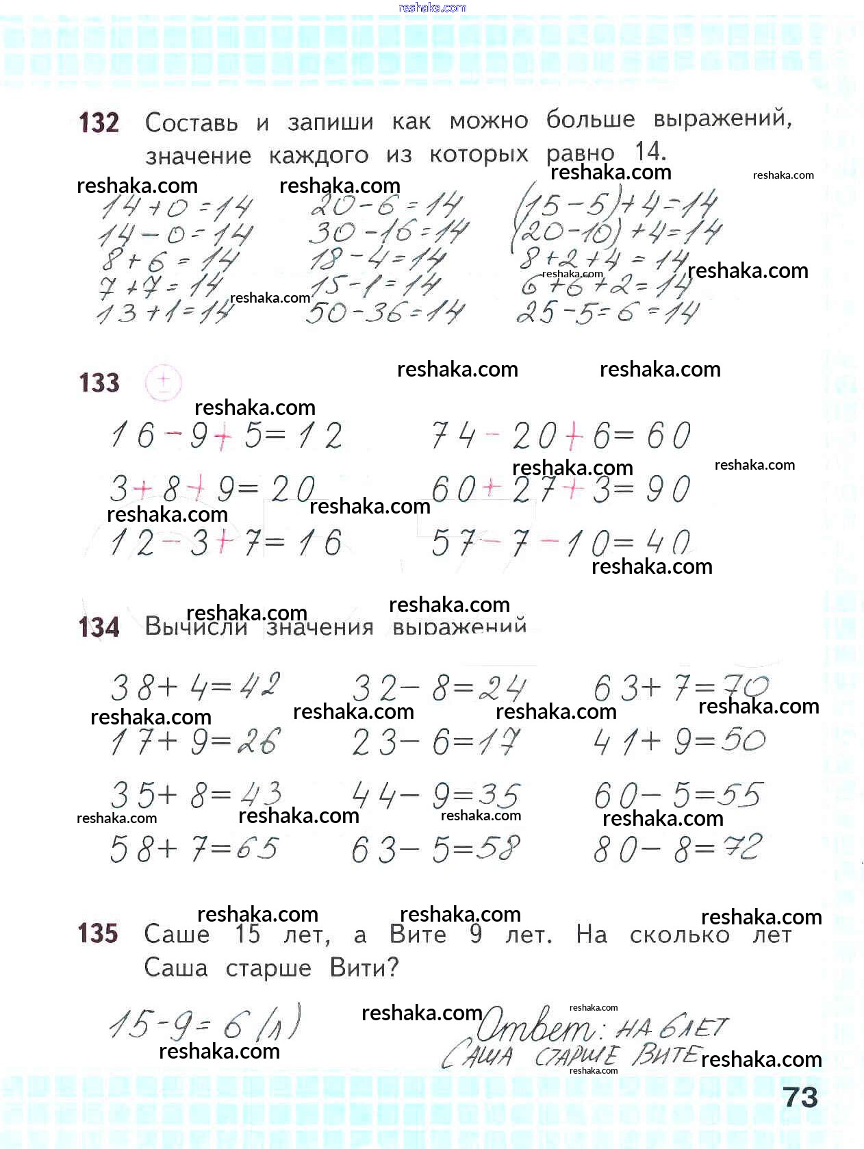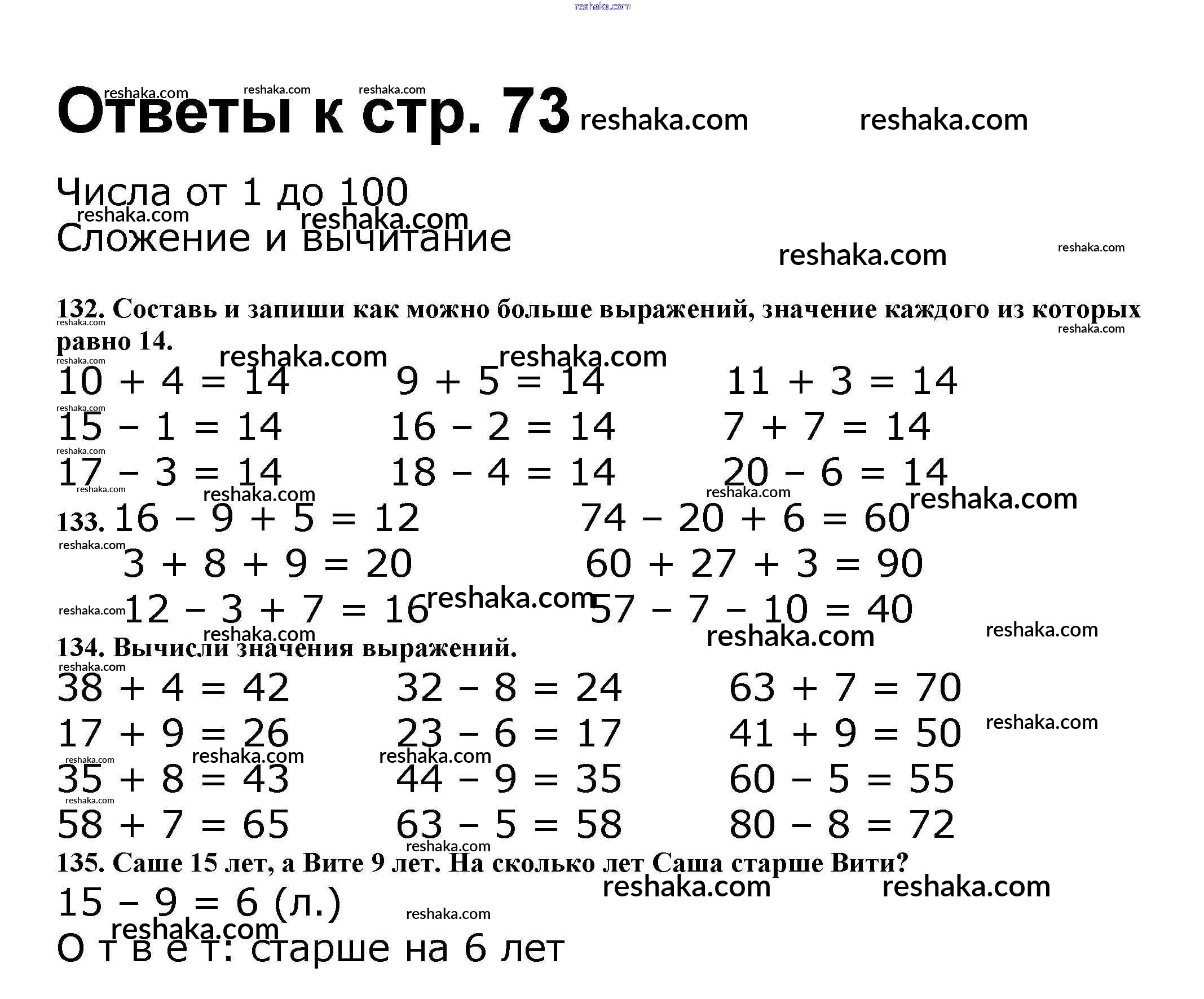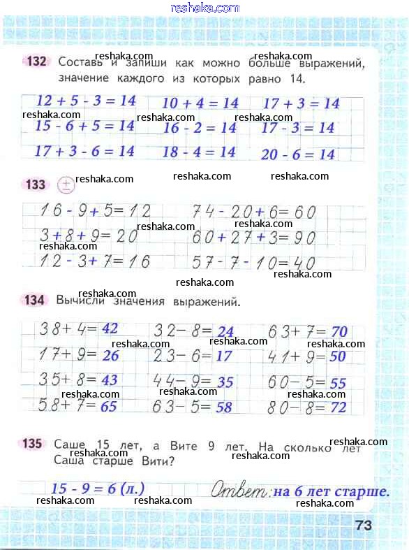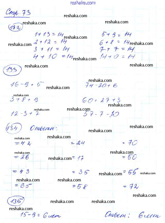 Решака - онлайн ответы Математика Волкова, Моро за 2 класс Рабочая тетрадь ФГОС 2016 - 73
