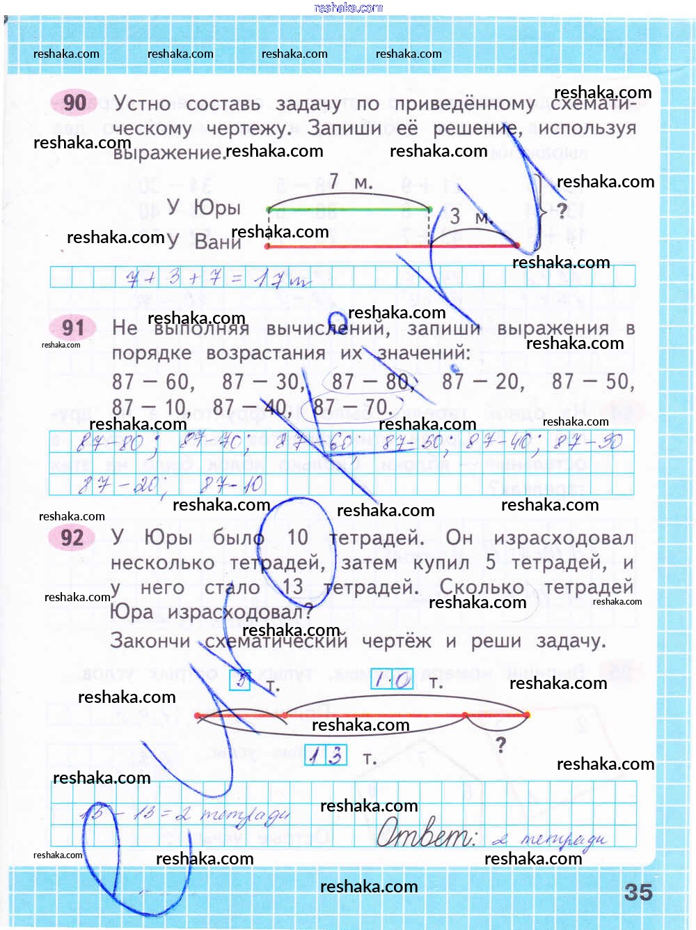 Решака - онлайн ответы Математика Волкова, Моро за 2 класс Рабочая тетрадь ФГОС 2016 - 35