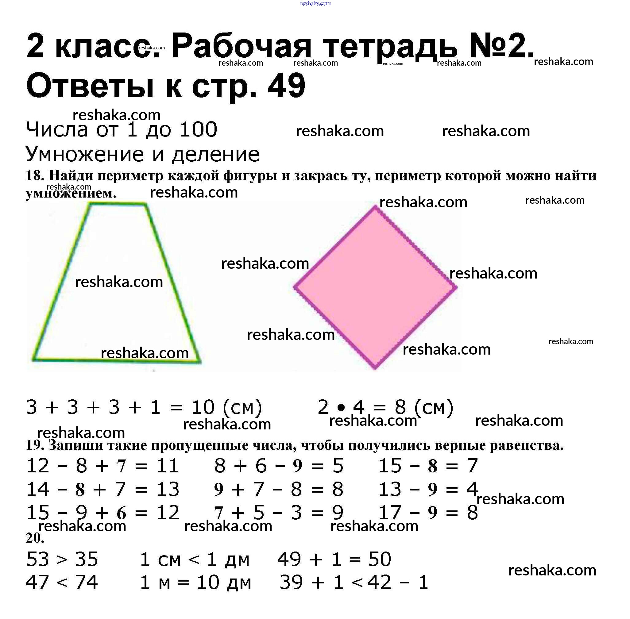 Решака - онлайн ответы Математика Волкова, Моро за 2 класс Рабочая тетрадь ФГОС 2016 - 49