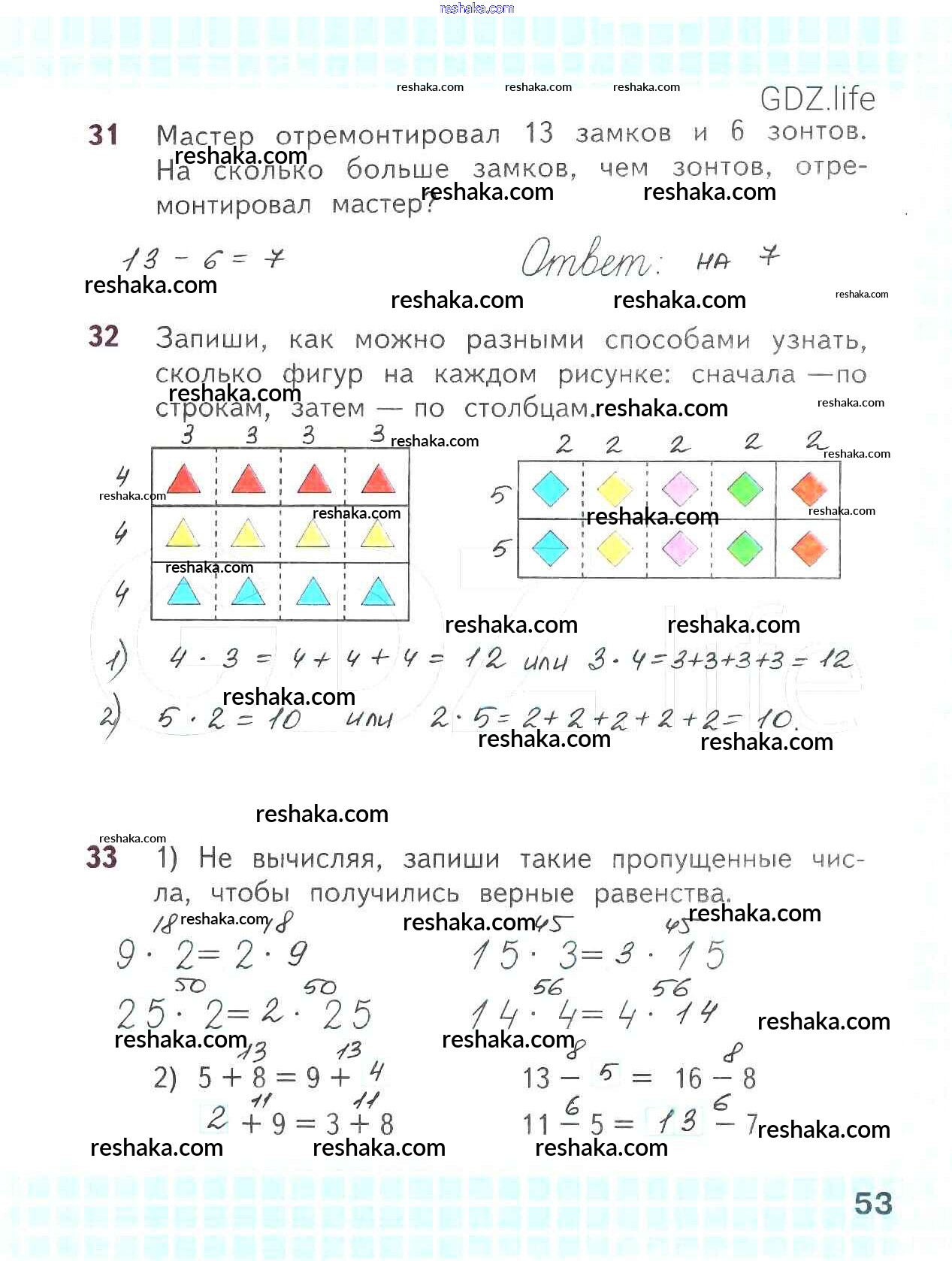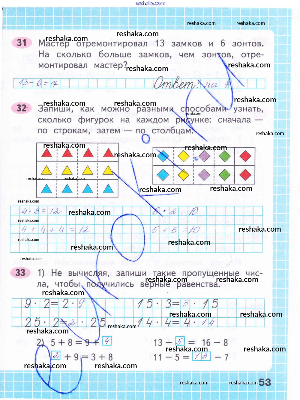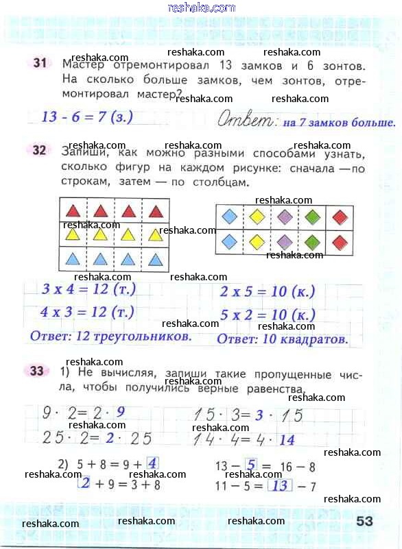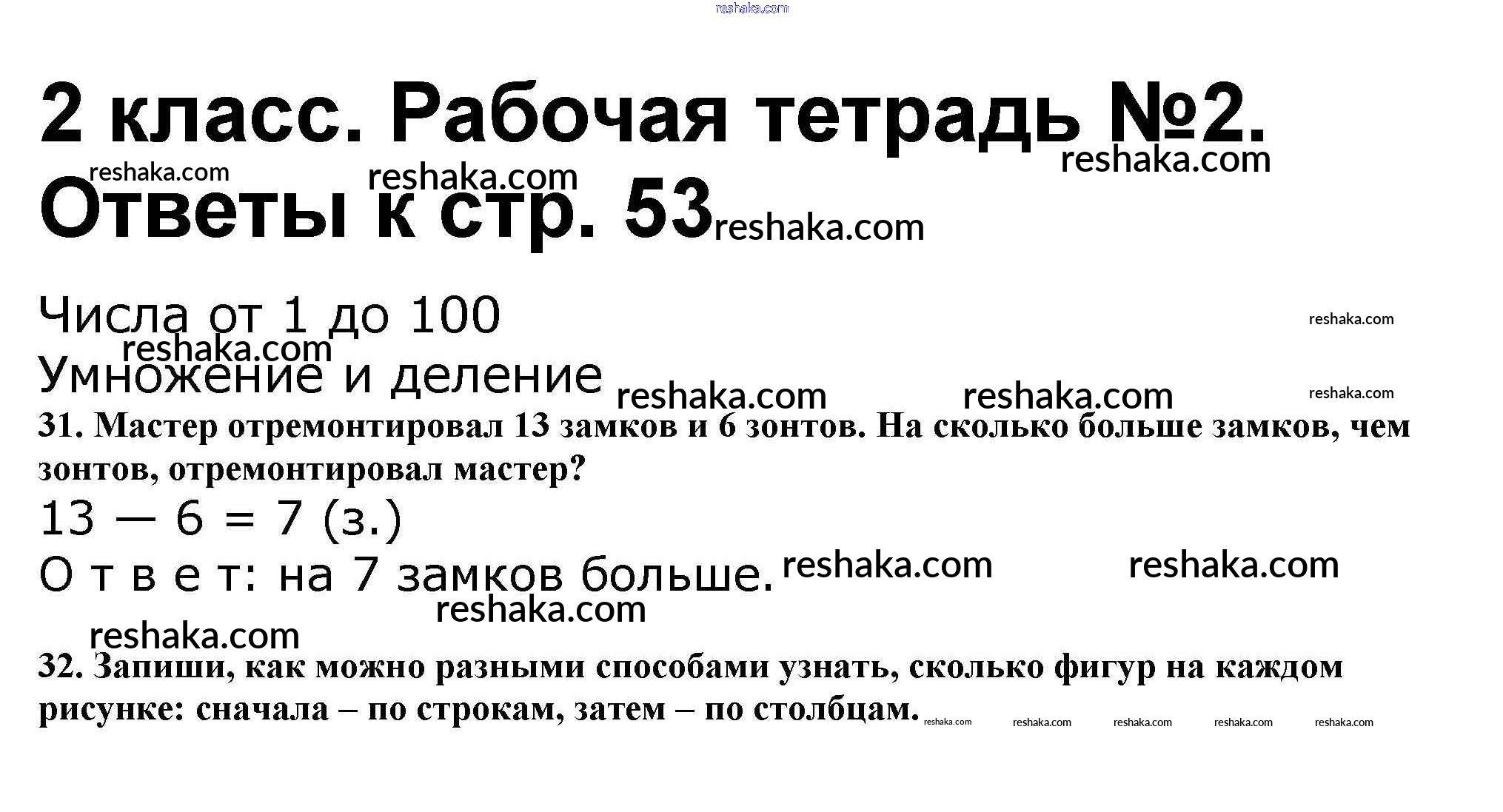 Решака - онлайн ответы Математика Волкова, Моро за 2 класс Рабочая тетрадь ФГОС 2016 - 53