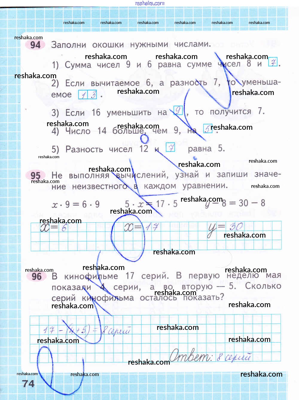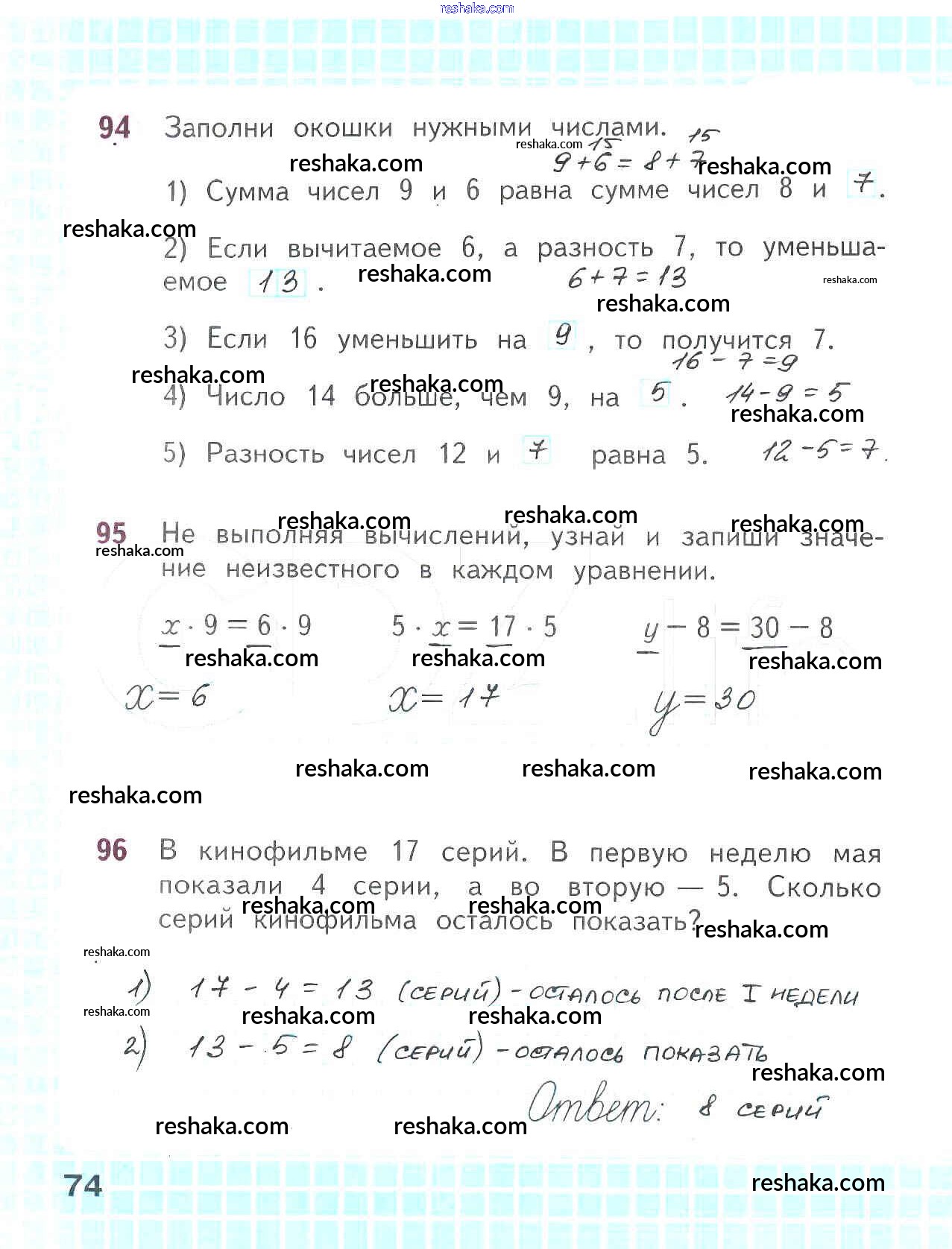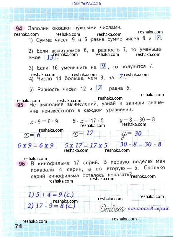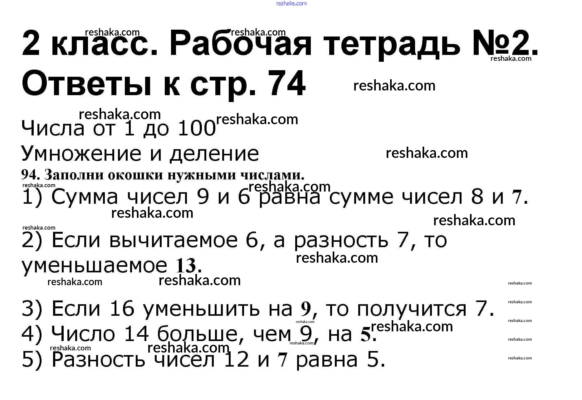 Решака - онлайн ответы Математика Волкова, Моро за 2 класс Рабочая тетрадь ФГОС 2016 - 74