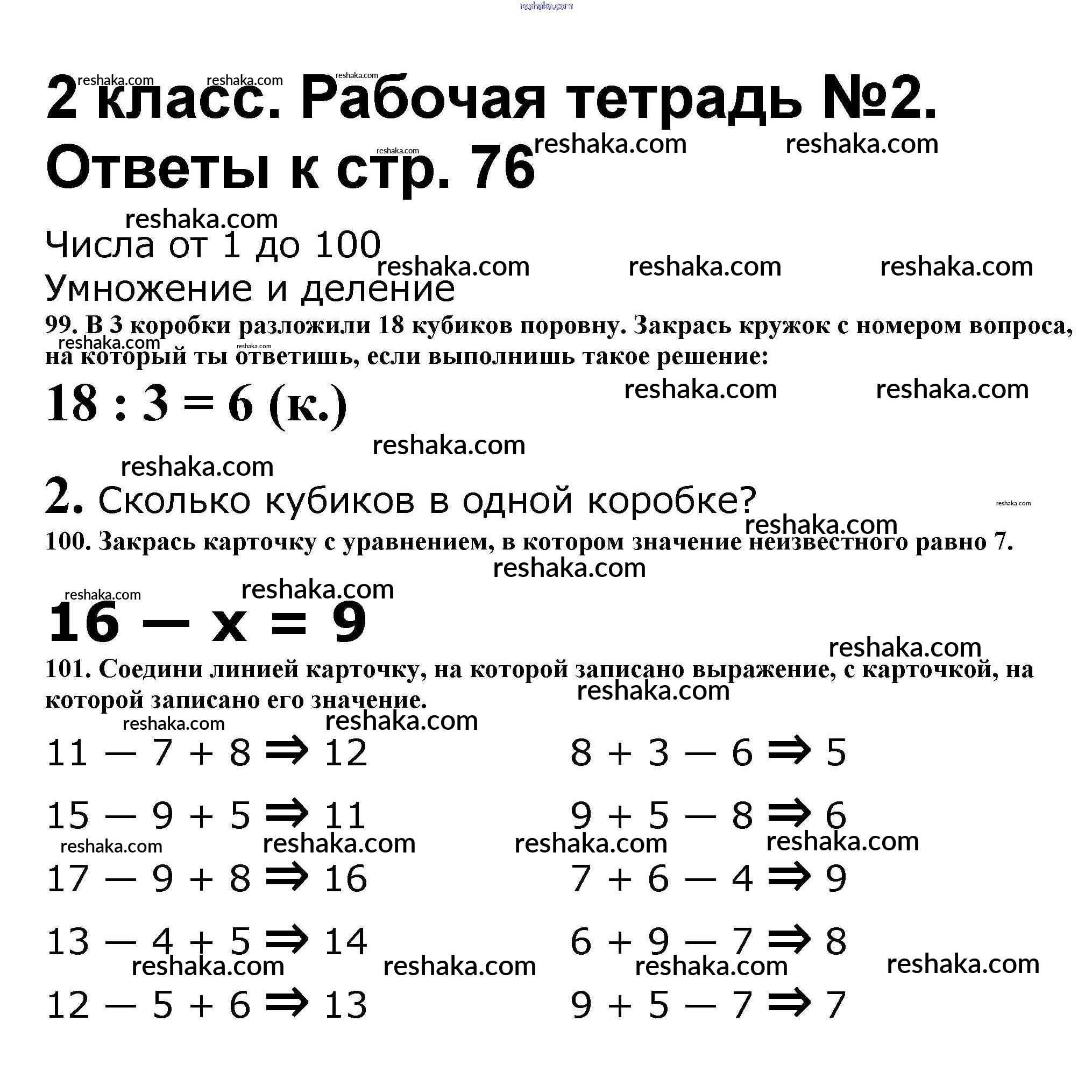 Решака - онлайн ответы Математика Волкова, Моро за 2 класс Рабочая тетрадь ФГОС 2016 - 76